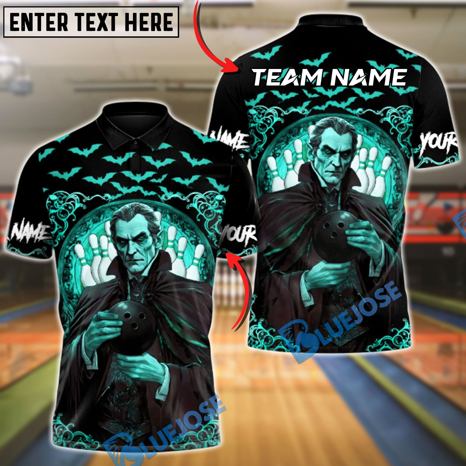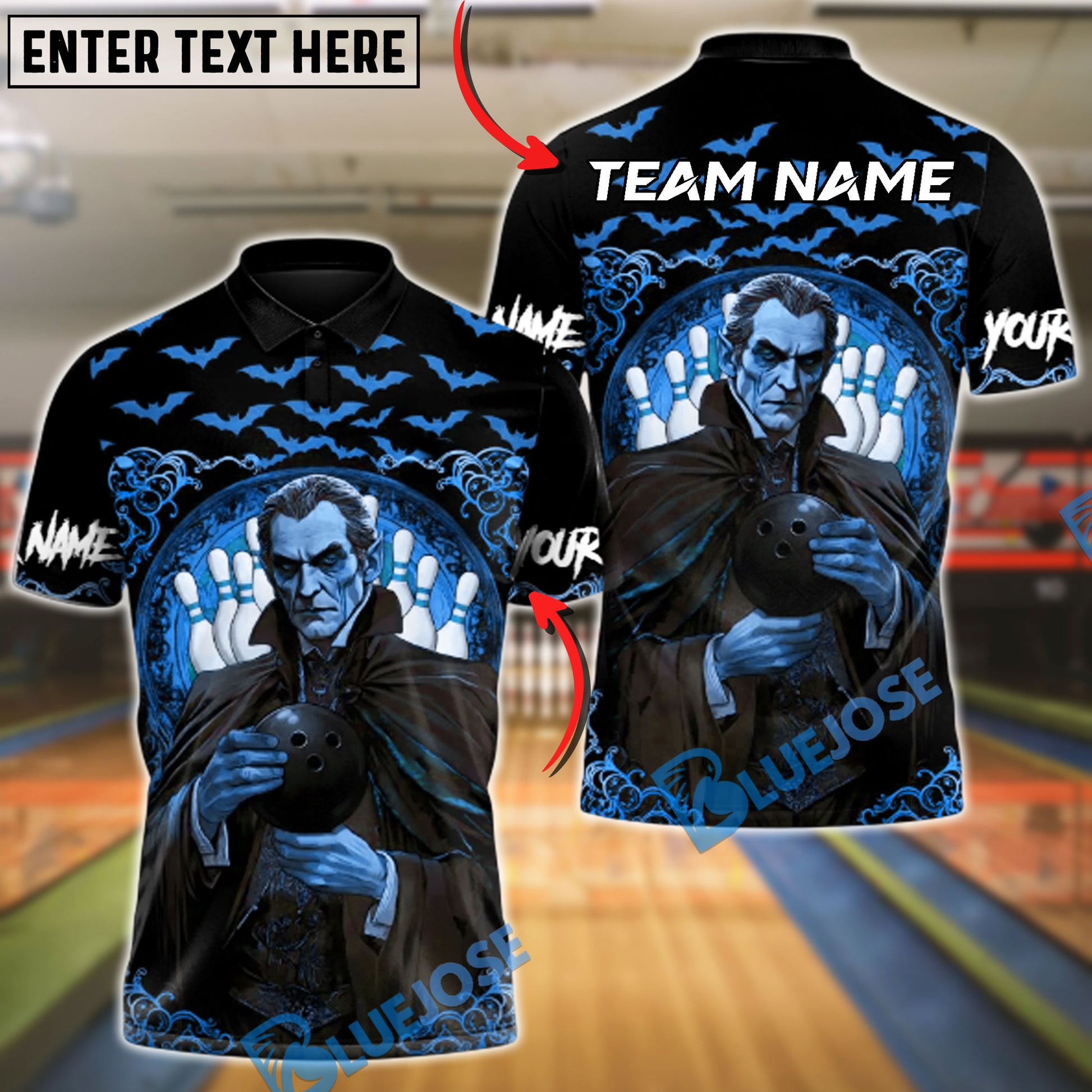 BlueJose Bowling & Pins Dracula Night Strike Customized Name, Team Name 3D Shirt (4 Colors)