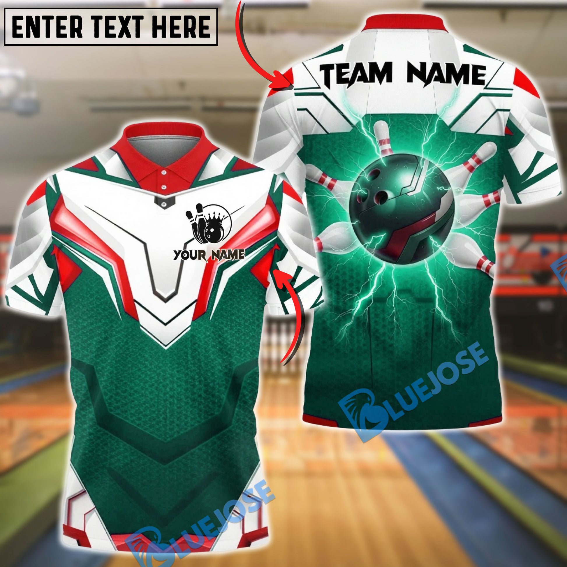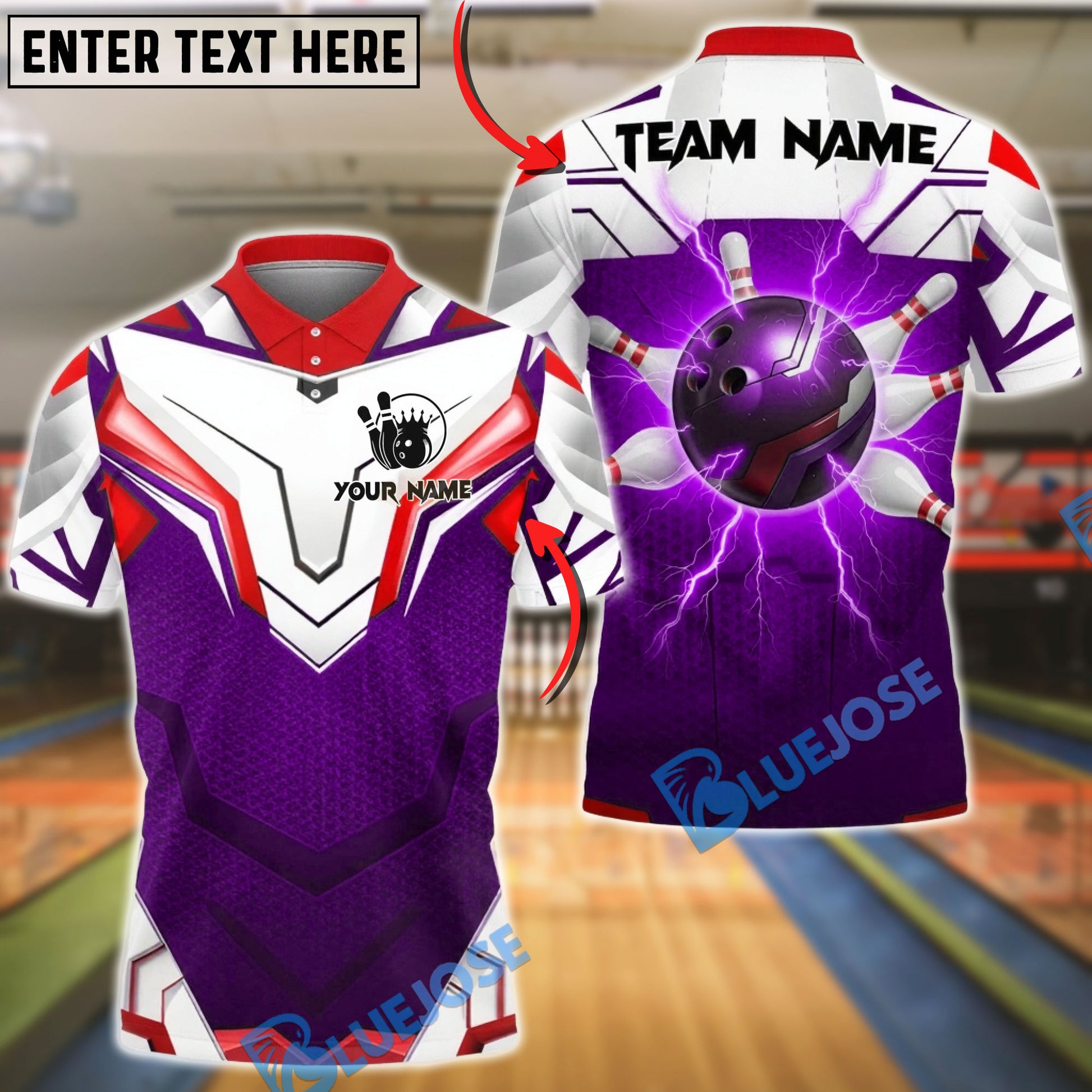 BlueJose Bowling & Pins Electric Bowling Ball Lightning Strike Design Customized Name, Team Name 3D Shirt (4 Colors)