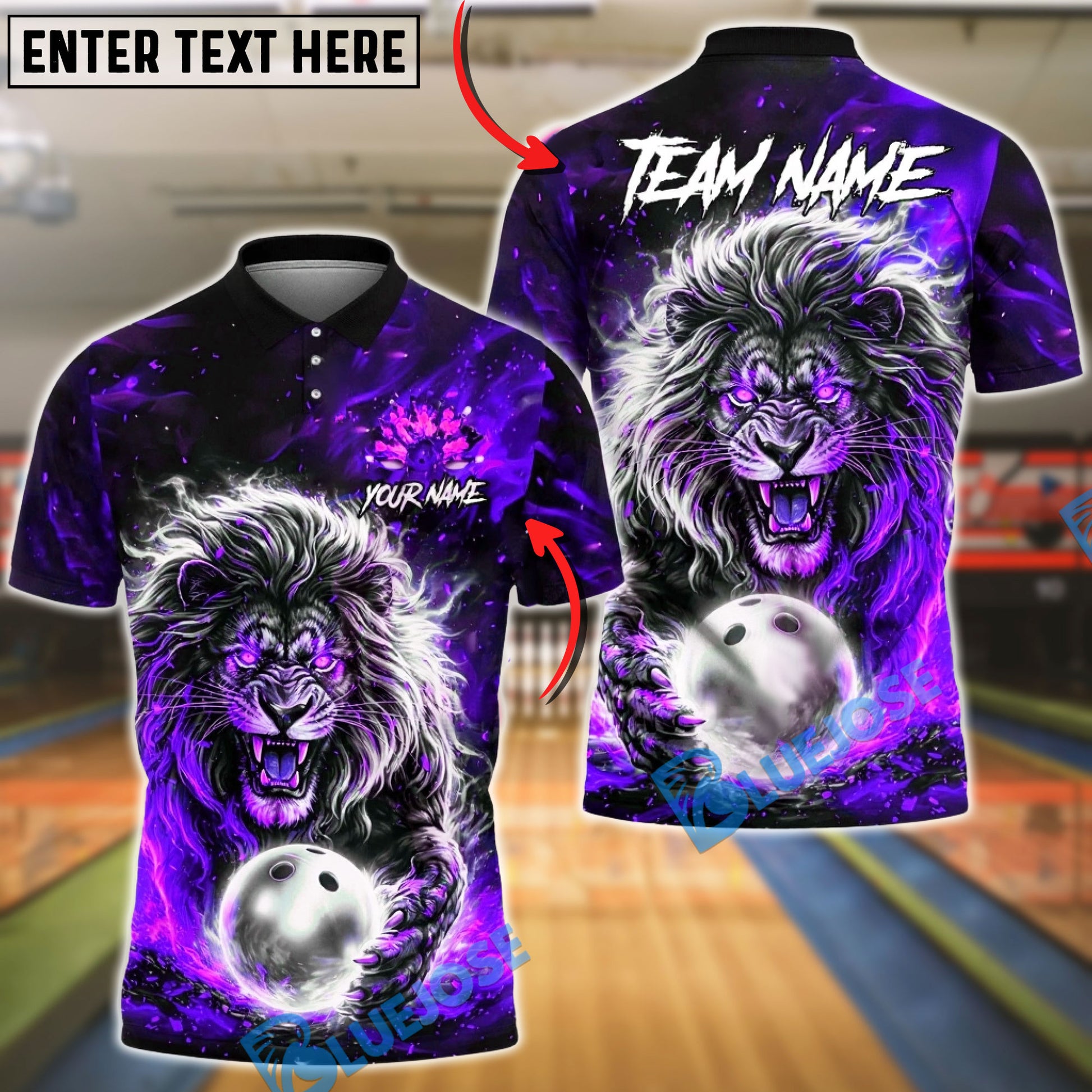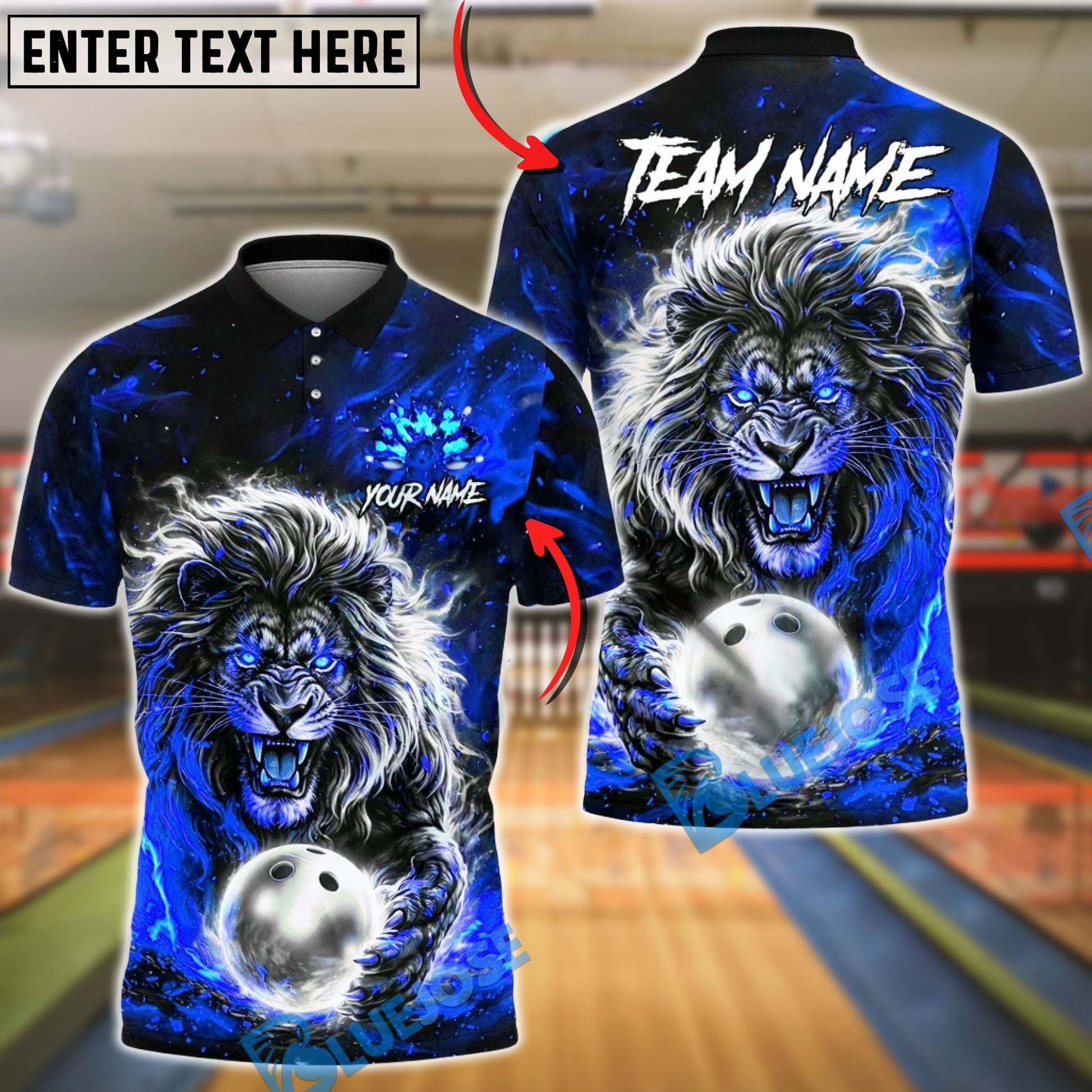 BlueJose Bowling & Pins Fire Lion Power Art Customized Name, Team Name 3D Shirt (6 Colors)