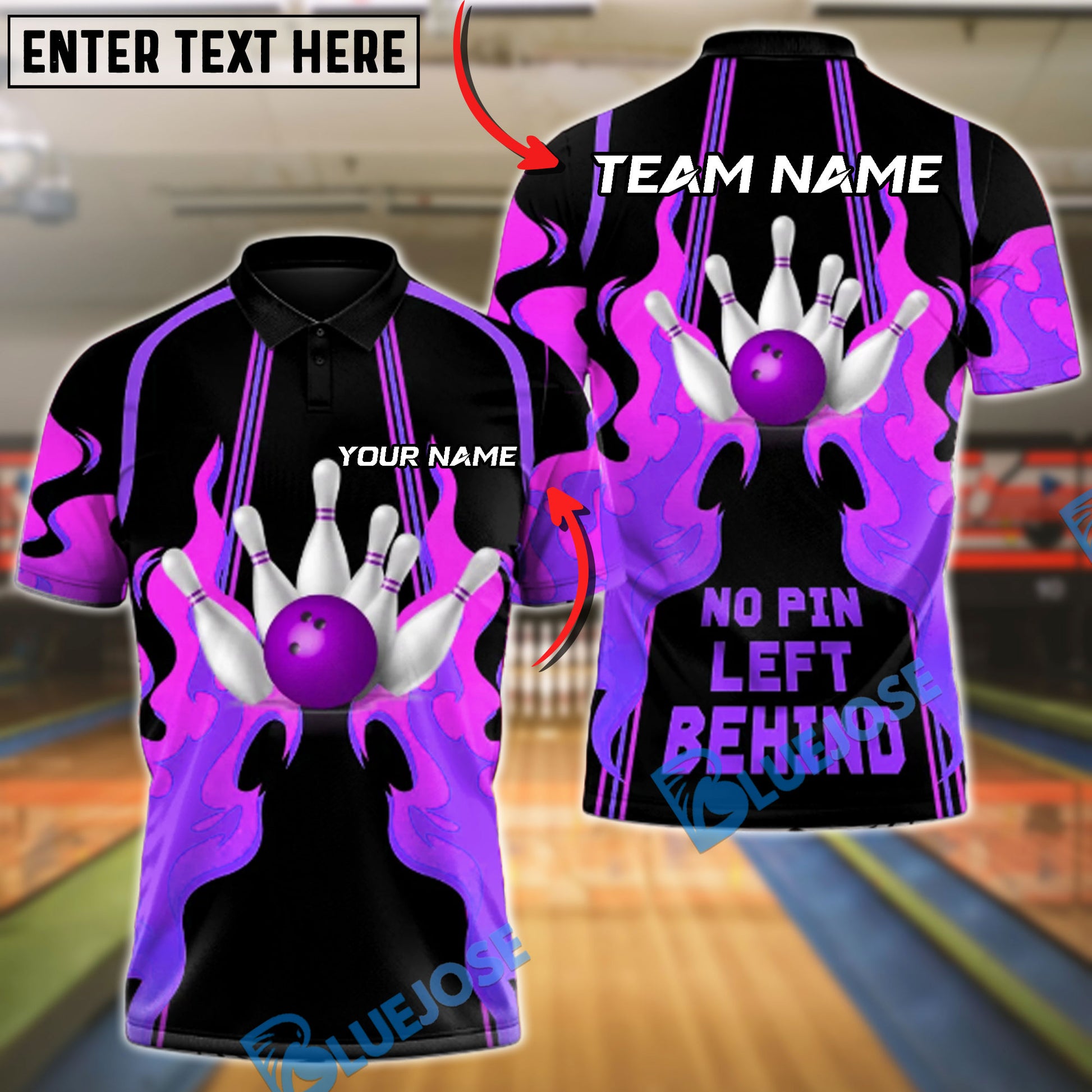 BlueJose Bowling & Pins Fire Strike “No Pin Left Behind” Customized Name, Team Name 3D Shirt (4 Colors)