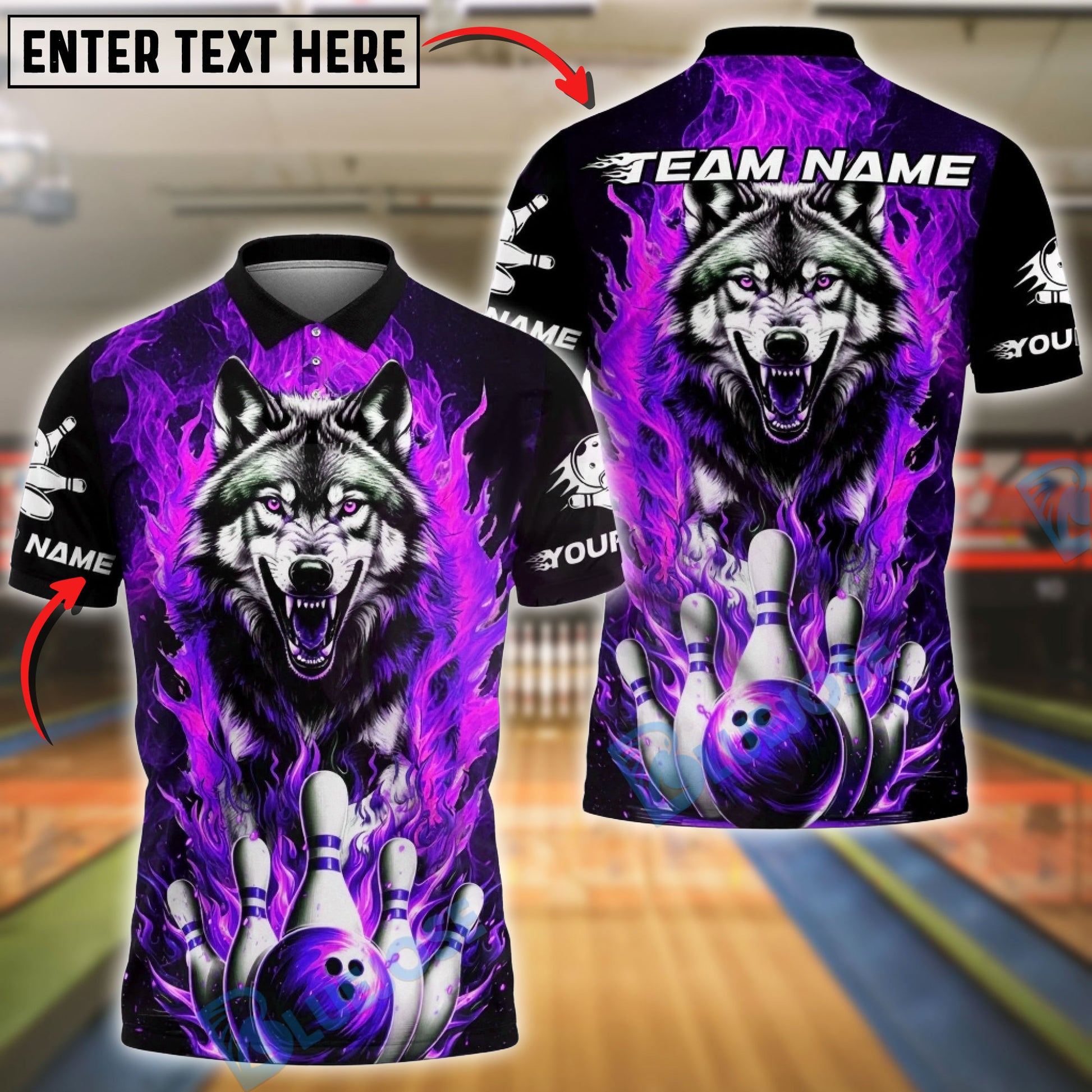 BlueJose Bowling & Pins Fire Wolf Strike Customized Name, Team Name 3D Shirt (4 Colors)