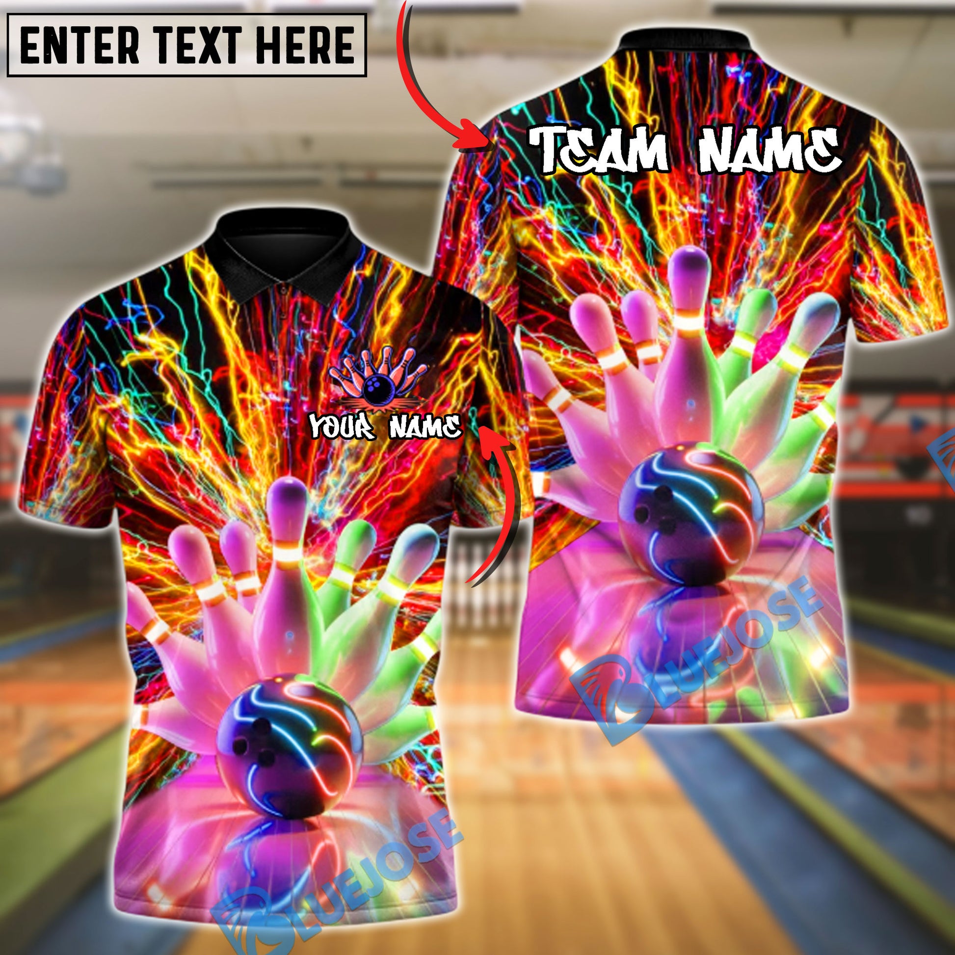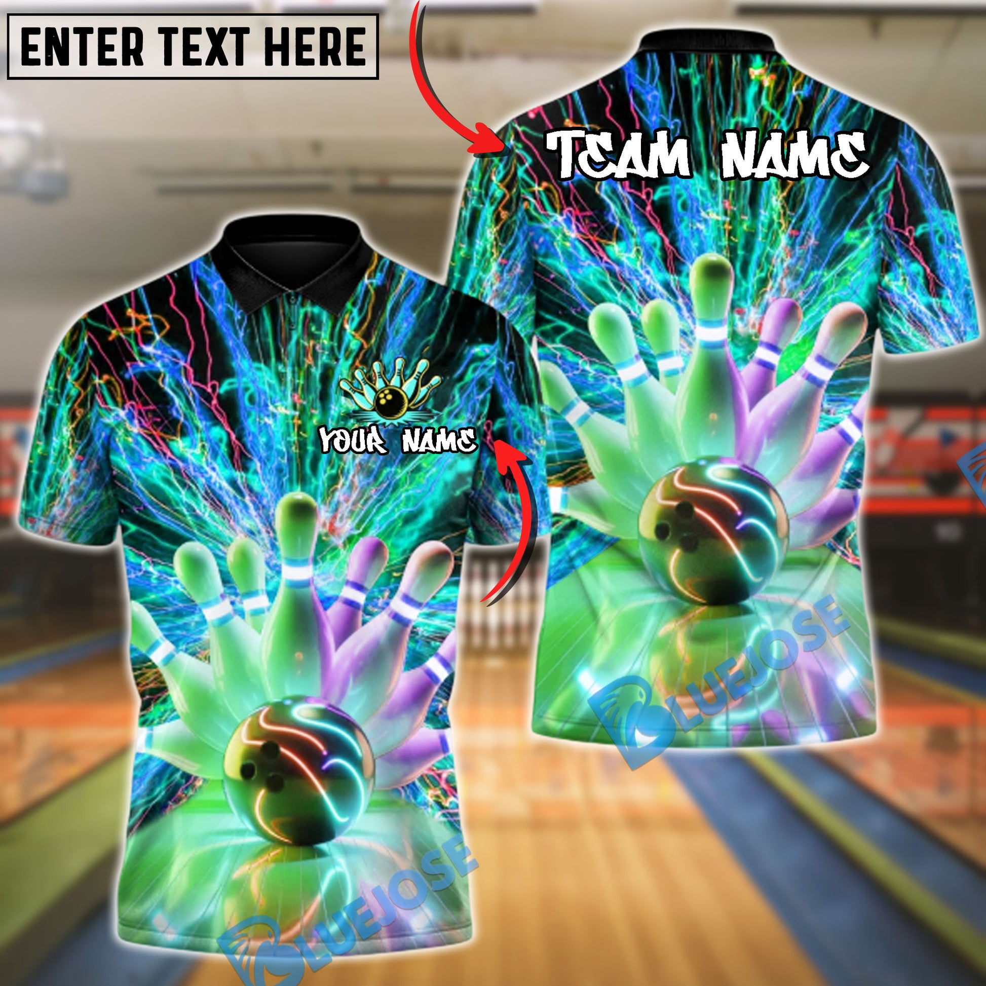 BlueJose Bowling & Pins Neon Thunder Warrior Customized Name, Team Name 3D Shirt (4 Colors)
