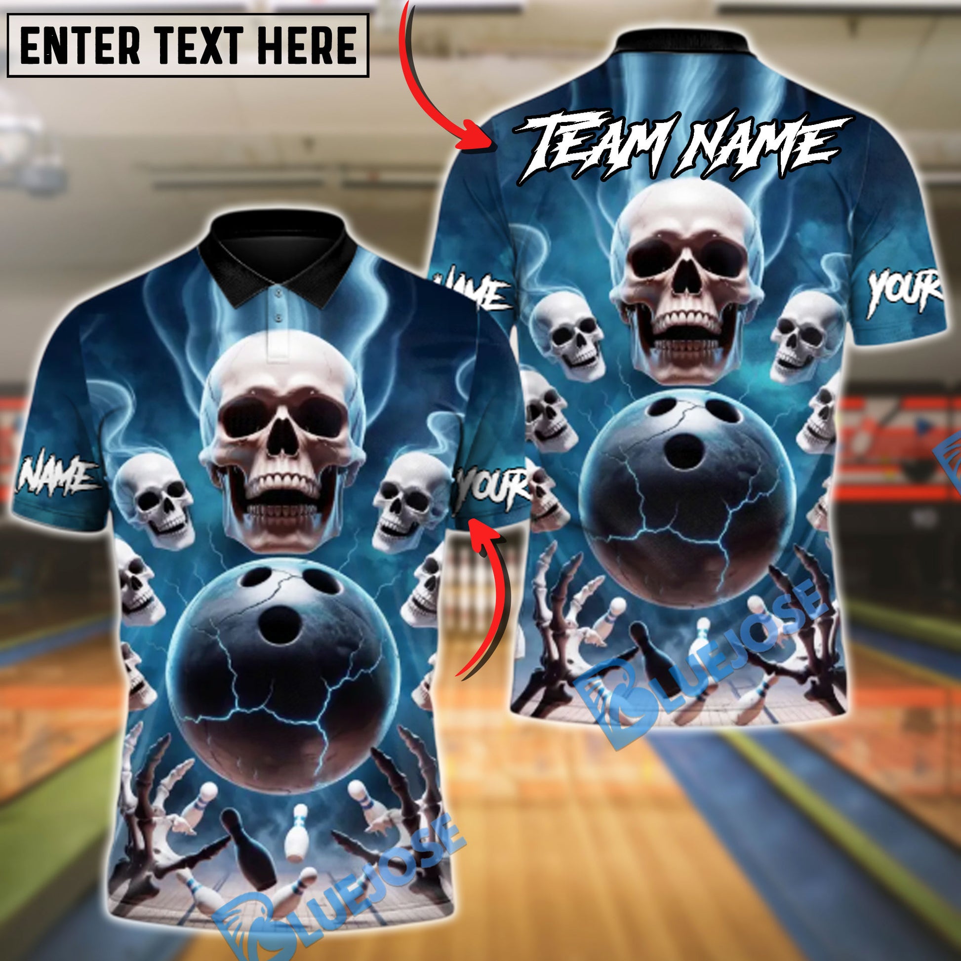 BlueJose Bowling & Pins Skull Force Attack Customized Name, Team Name 3D Shirt (4 Colors)