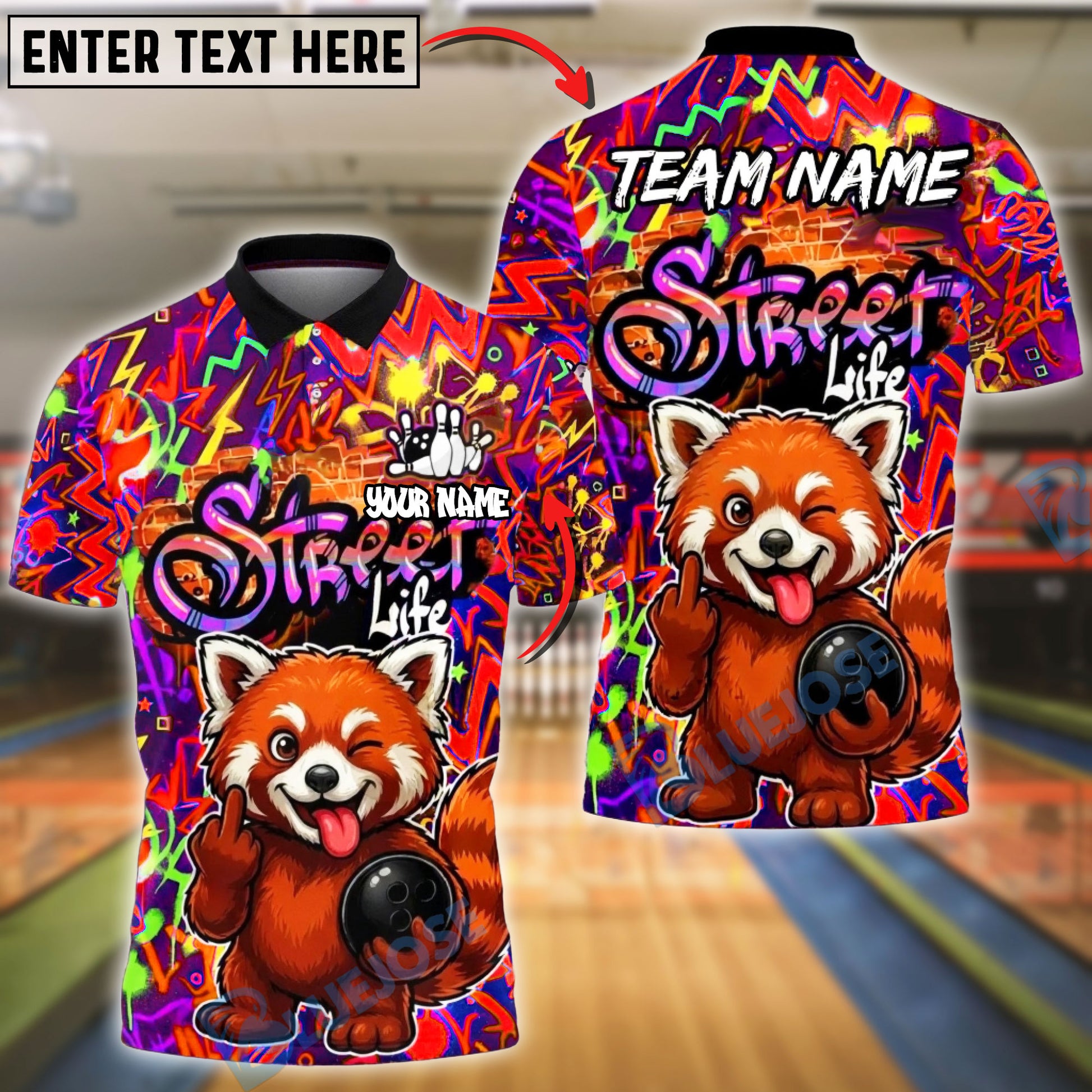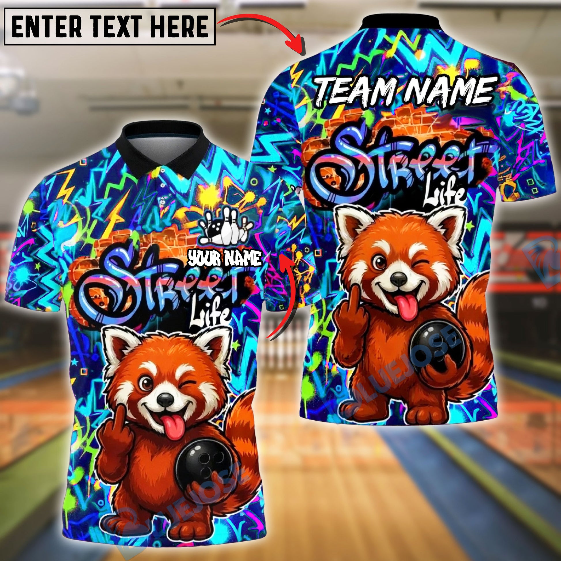 BlueJose Bowling & Pins Street Life Raccoon Neon Splash Customized Name, Team Name 3D Shirt (4 Colors)