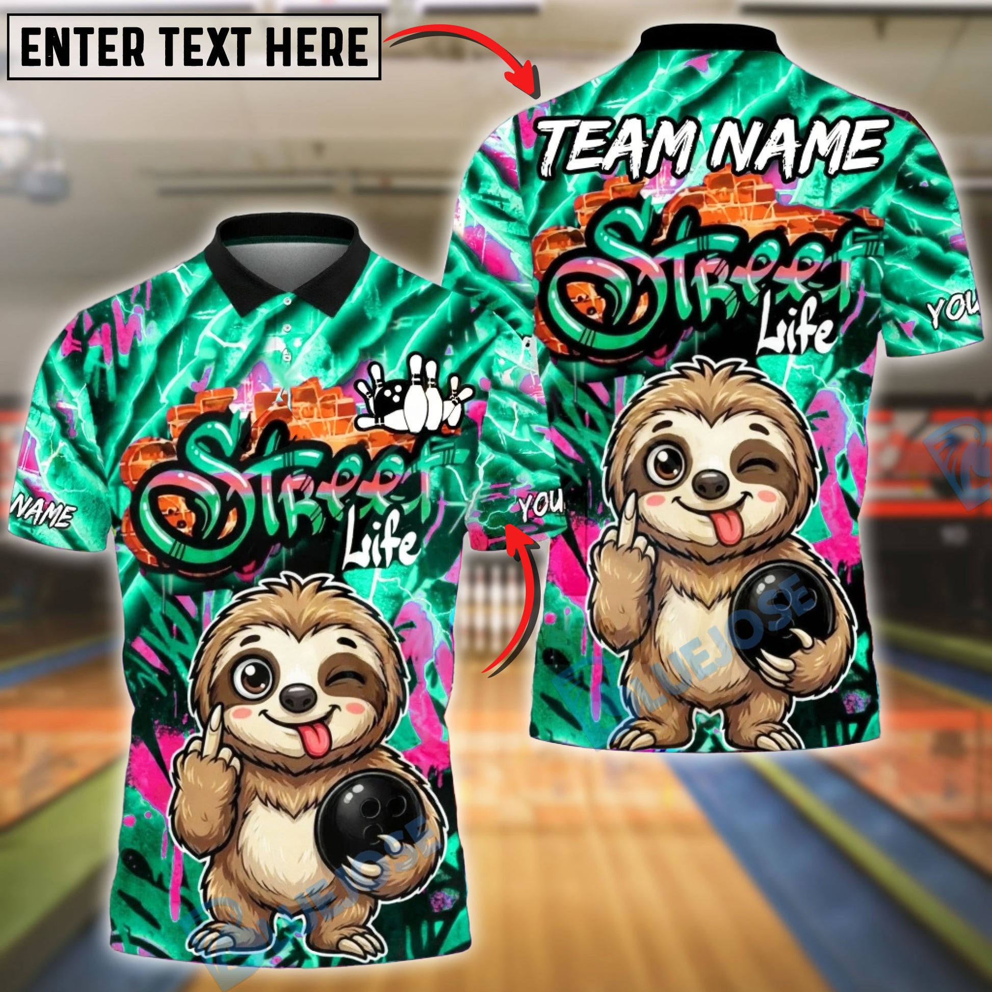 BlueJose Bowling & Pins Street Life Sloth Neon Graffiti Customized Name, Team Name 3D Shirt (4 Colors)