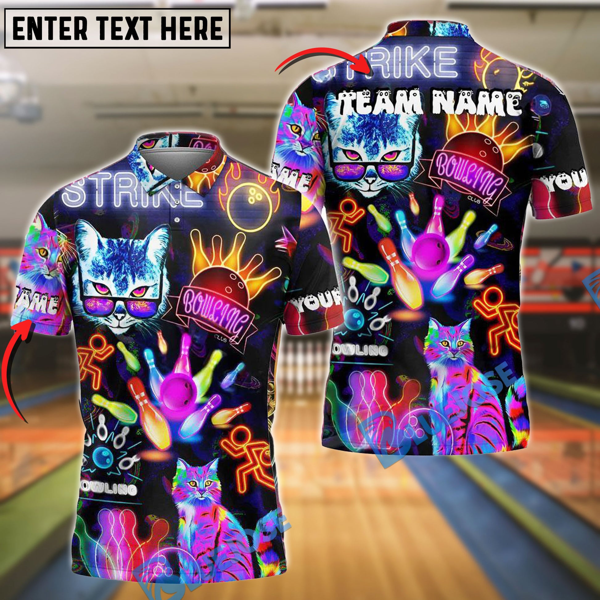 BlueJose Bowling Psychedelic Cat Strike Customized Name, Team Name 3D Shirt