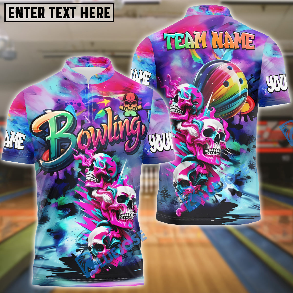 BlueJose Bowling Skull Neon Graffiti Personalized Shirt