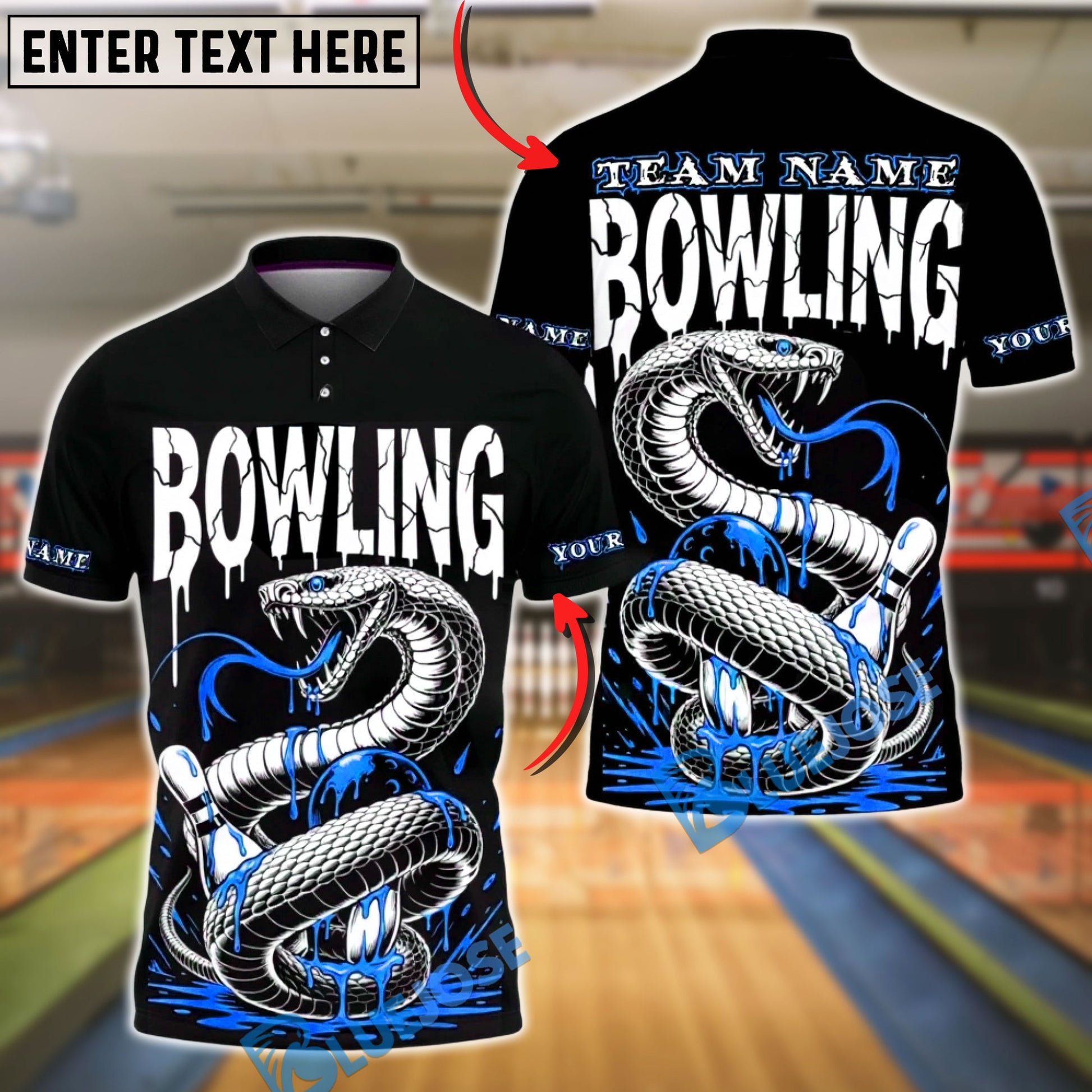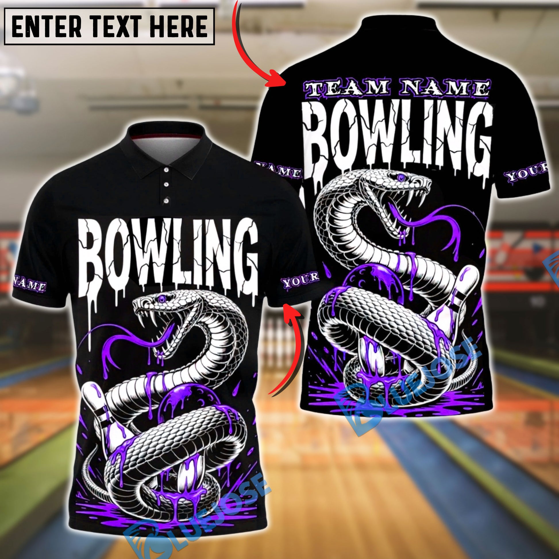 BlueJose Bowling Snake Venom Drip Design Customized Name, Team Name 3D Shirt (4 Colors)