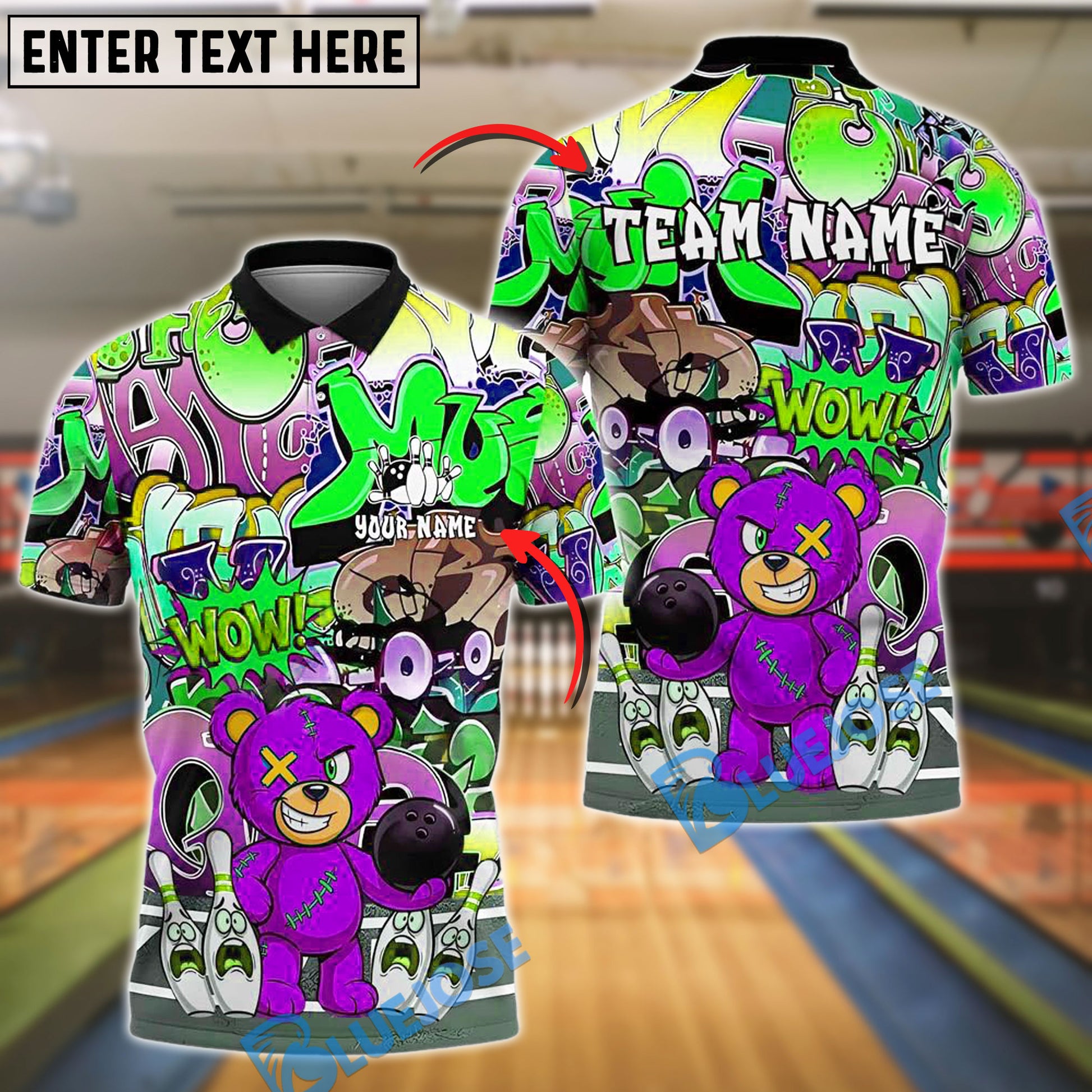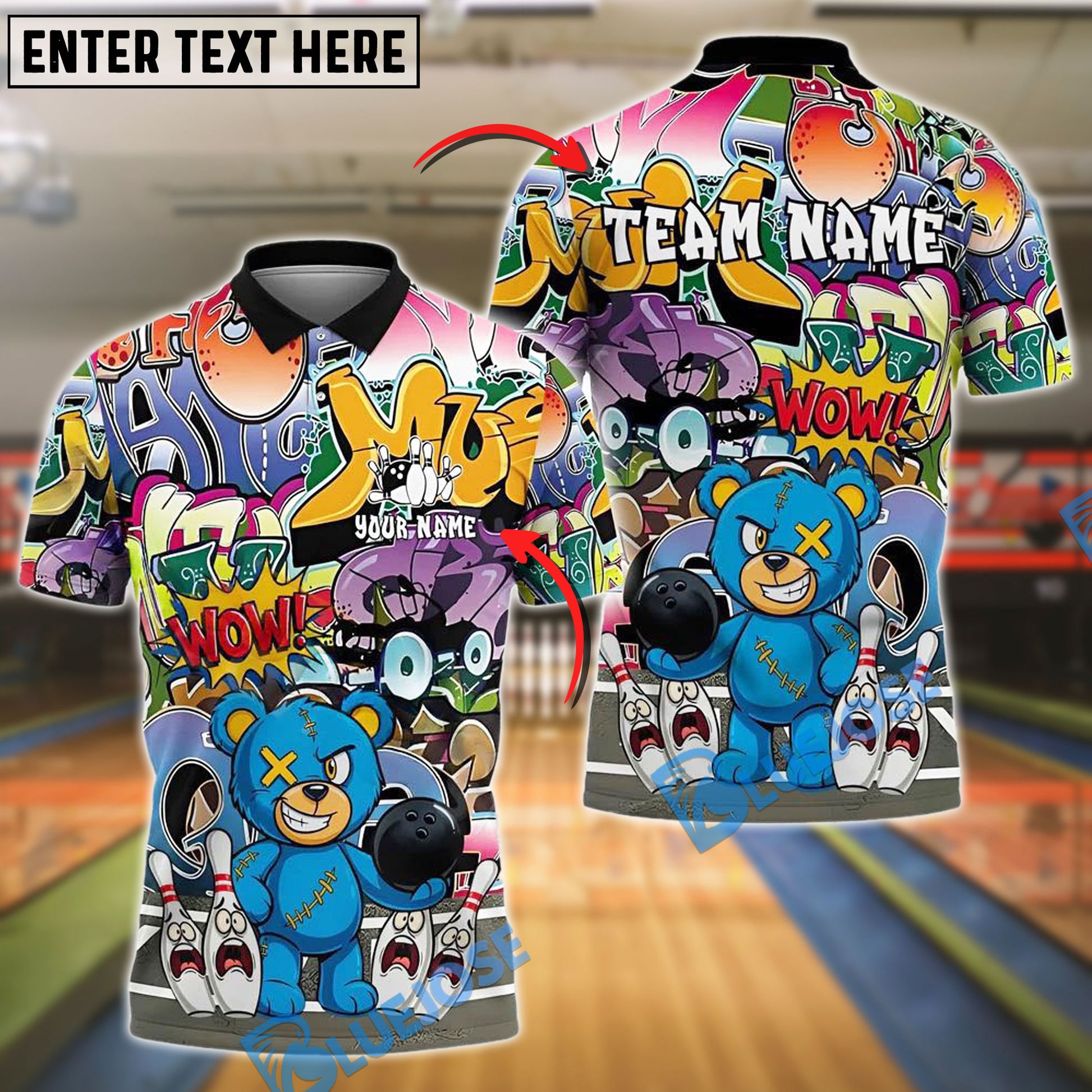BlueJose Bowling Teddy Attack Customized Name, Team Name 3D Shirt (4 Colors)