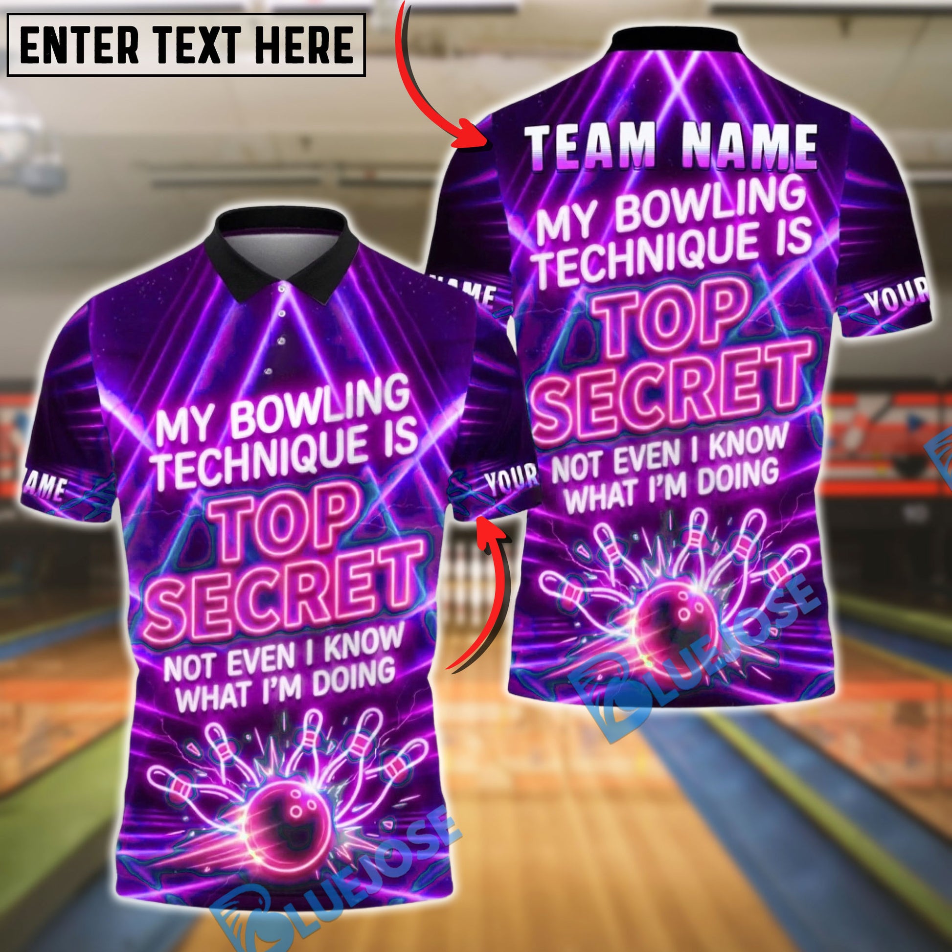 BlueJose Bowling Top Secret Technique Neon Design Customized Name, Team Name 3D Shirt (4 Colors)