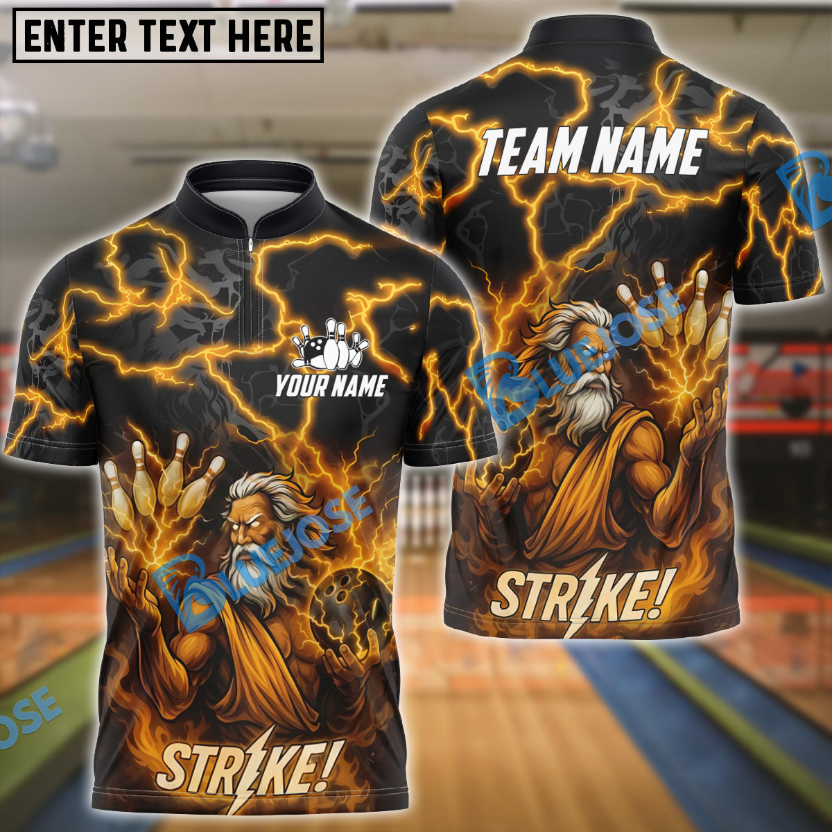 BlueJose Bowling Zeus Lightning STRIKE! Customized Name, Team Name 3D Shirt (4 Colors)