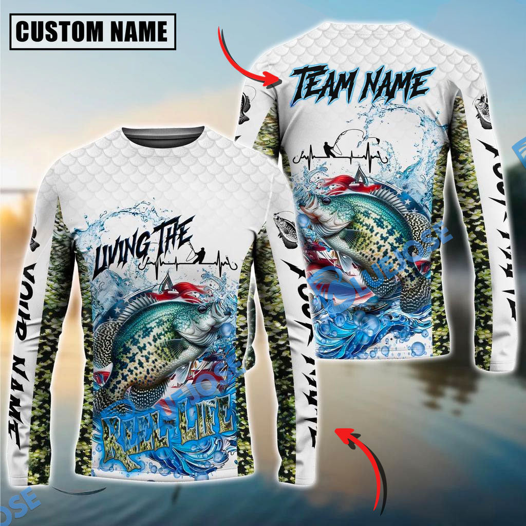 Bluejose Crappie Fishing Patriotic Reel Life Design Custom Name & Team Name 3D Shirts