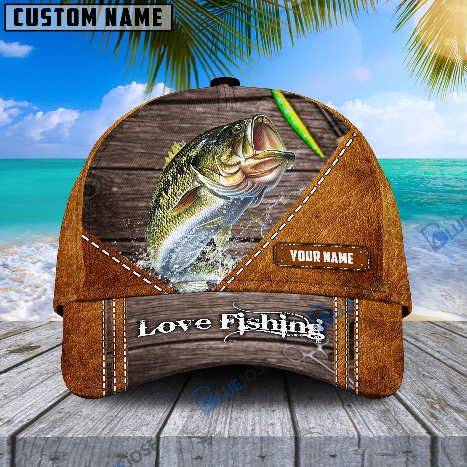 BlueJose Custom Name Bass Fishing Leather Pattern Cap