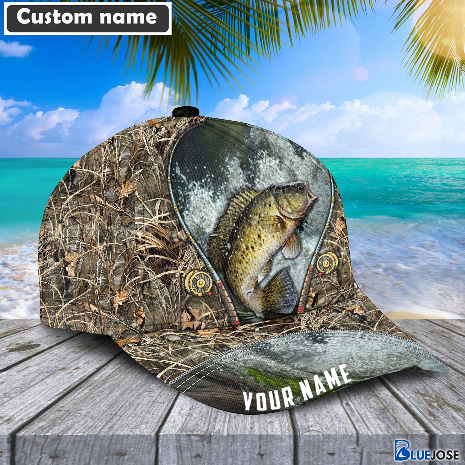 BlueJose Custom Name Crappie Fishing Rod Cap