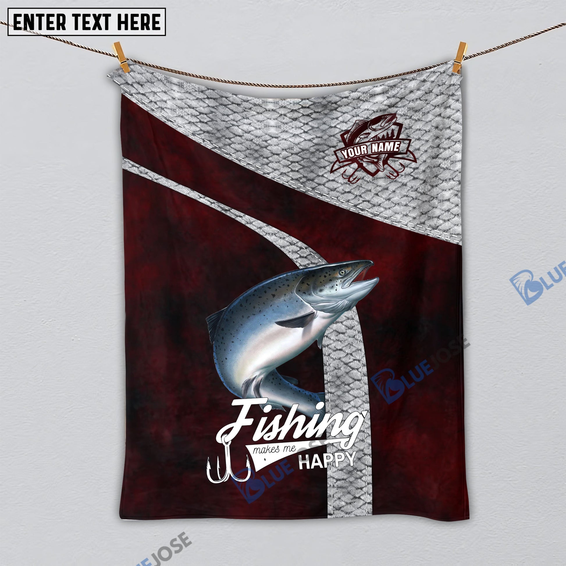 BlueJose Custom Name Salmon Fishing Red Blanket