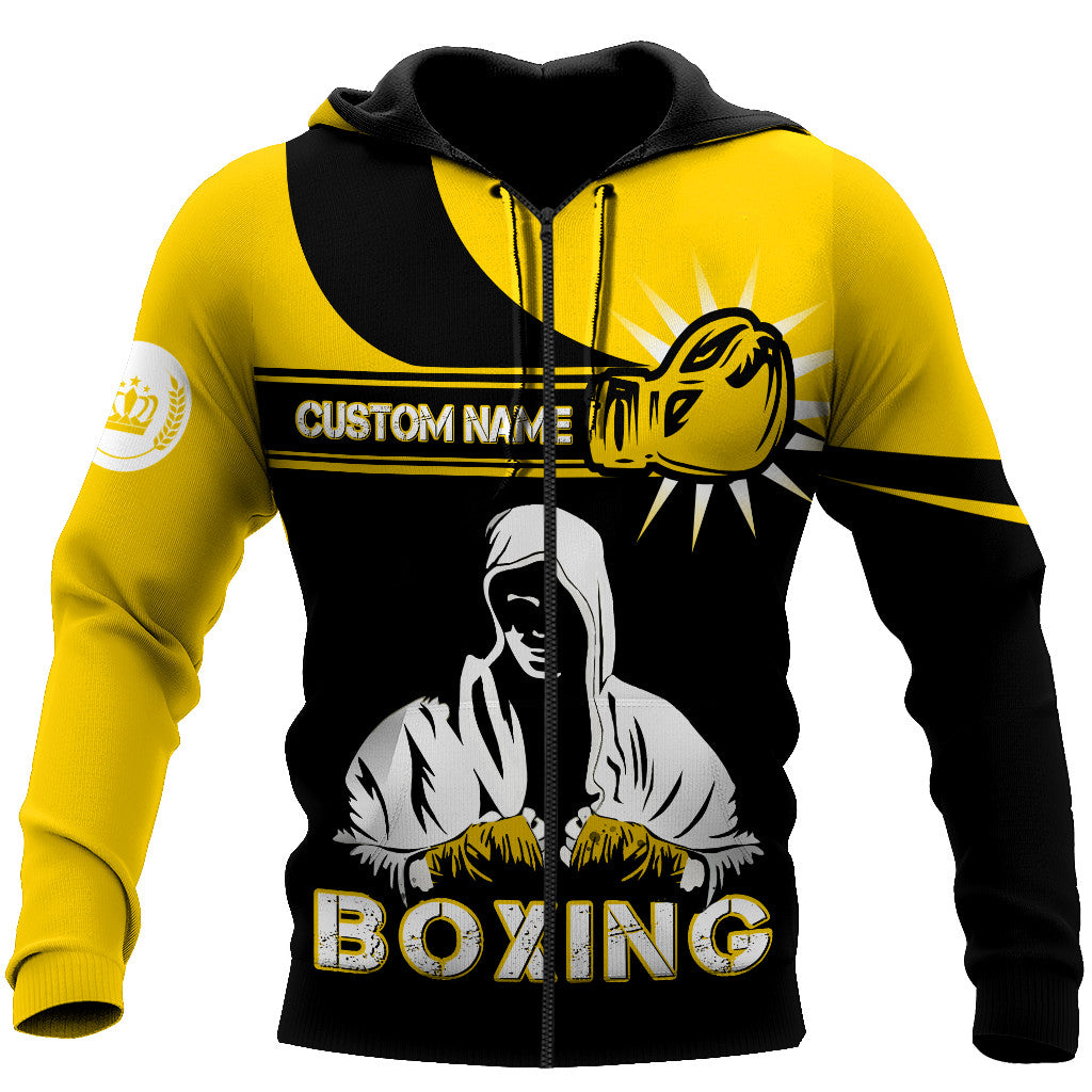 BlueJose Custom Name Yellow Black Boxing 3D Hoodie