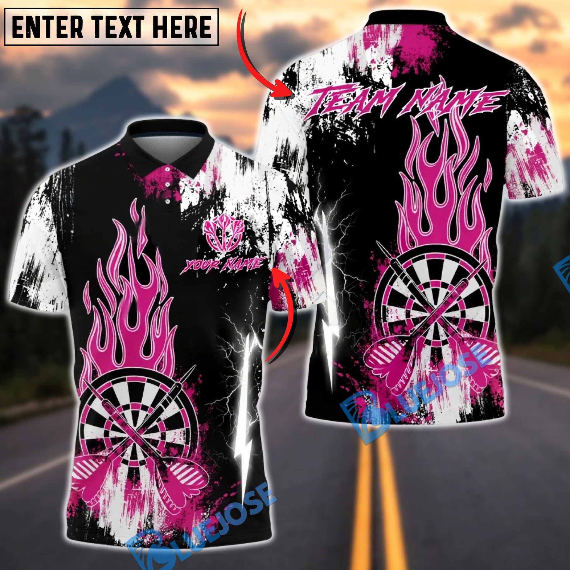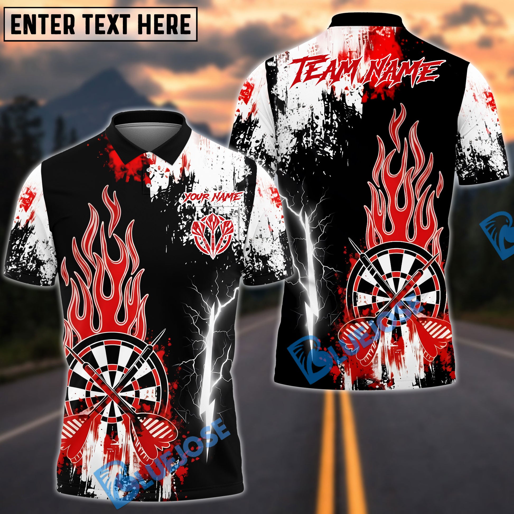 BlueJose Darts Abstract Flame Multicolor Options Personalized Name Shirt (4 Colors)