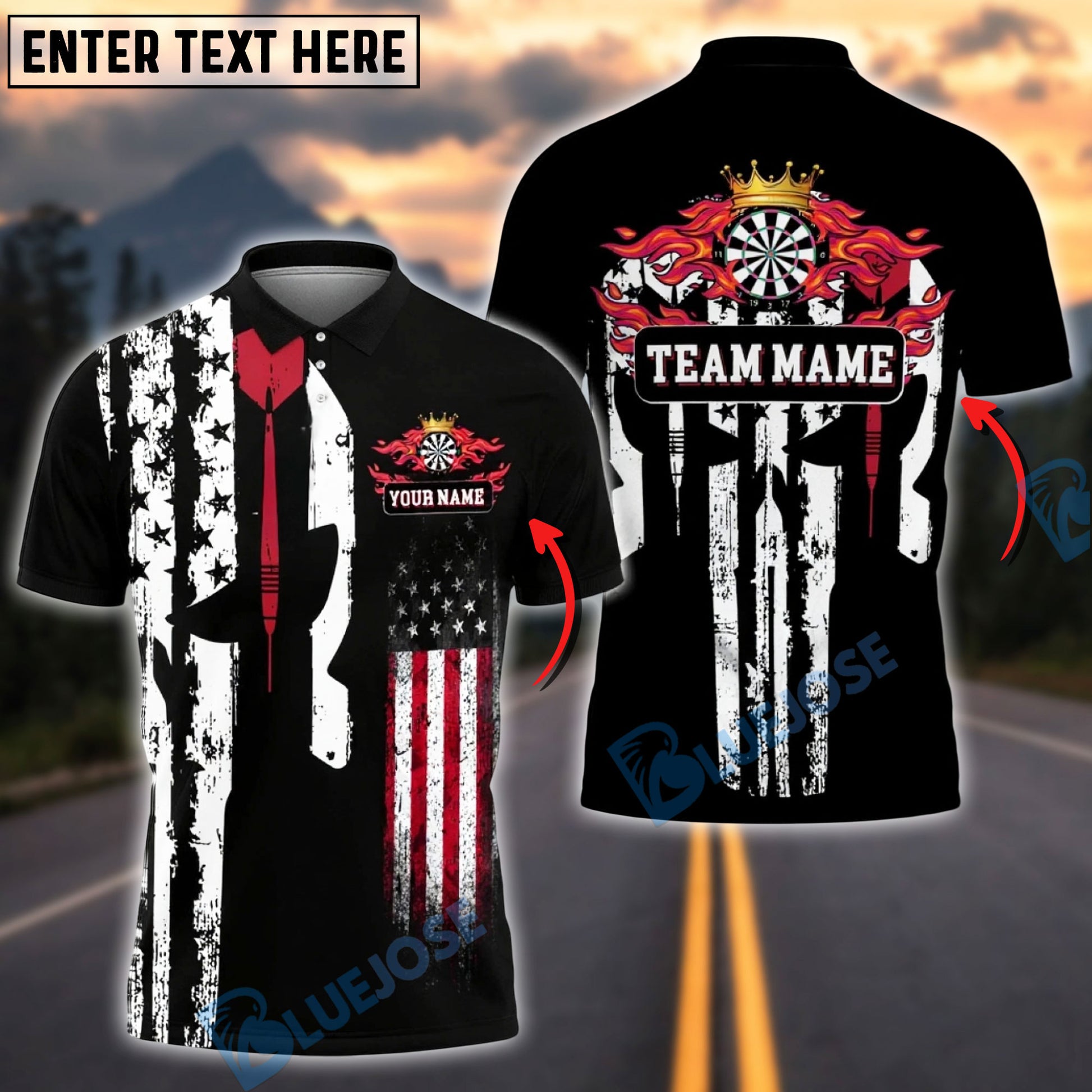 BlueJose Darts American Flag Punisher Flaming Personalized Name Shirt