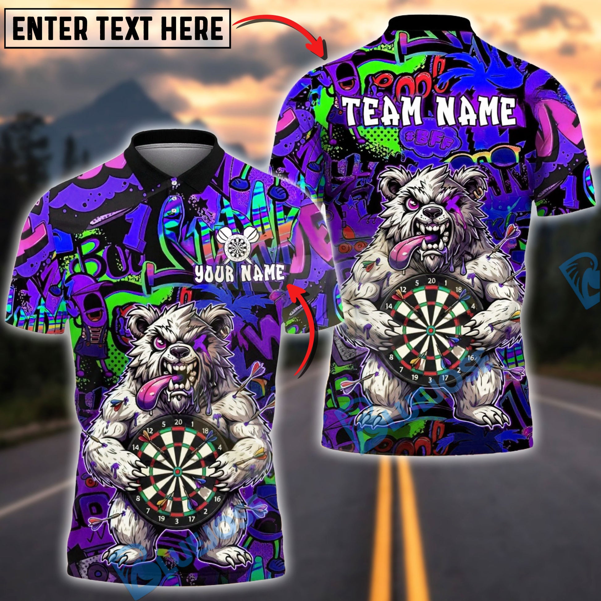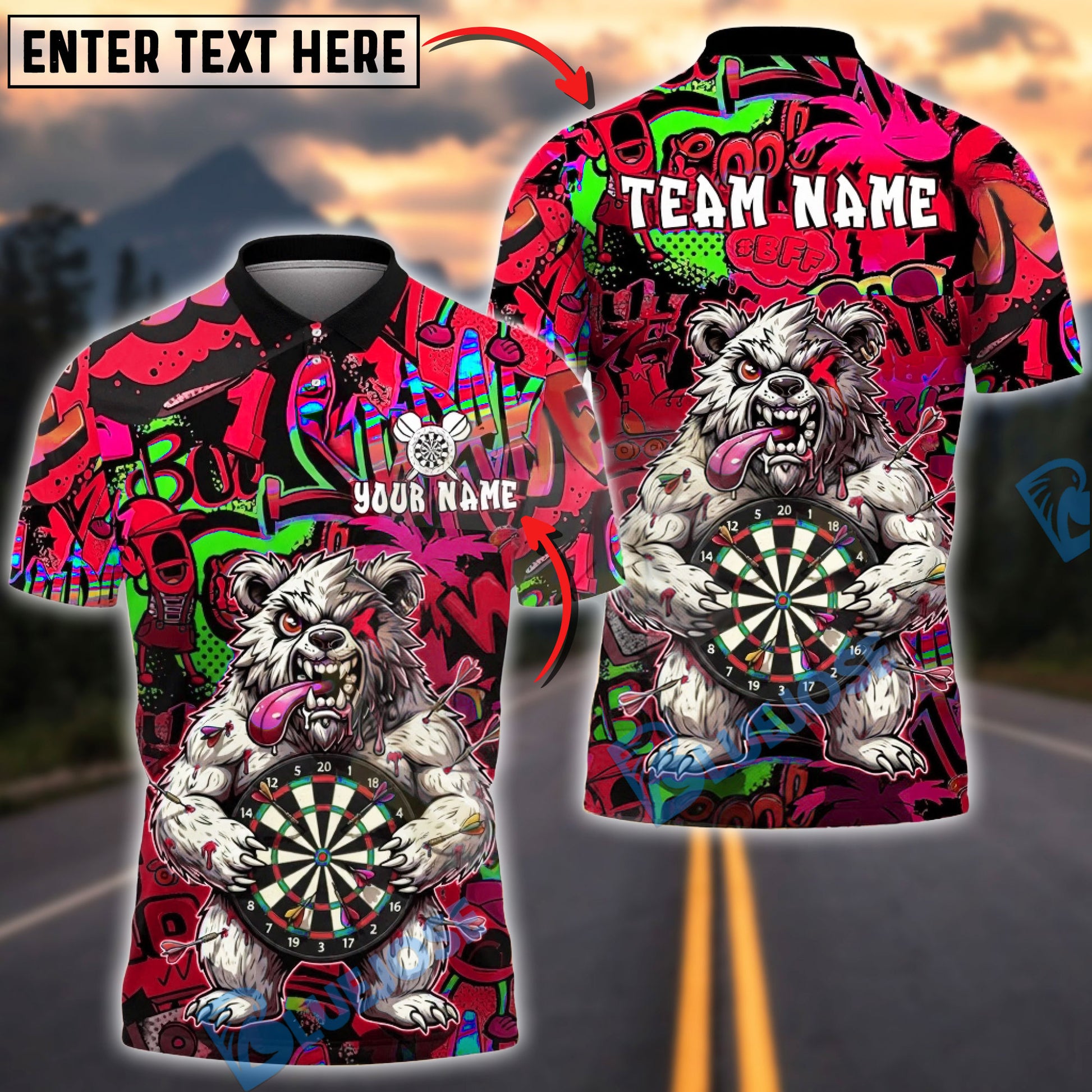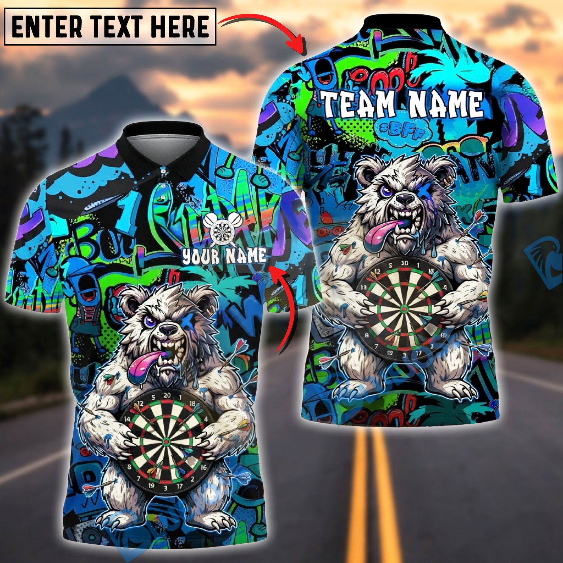 BlueJose Darts Angry Bear Holding Dartboard Graffiti Art Multicolor Options Personalized Name Shirt (4 Colors)