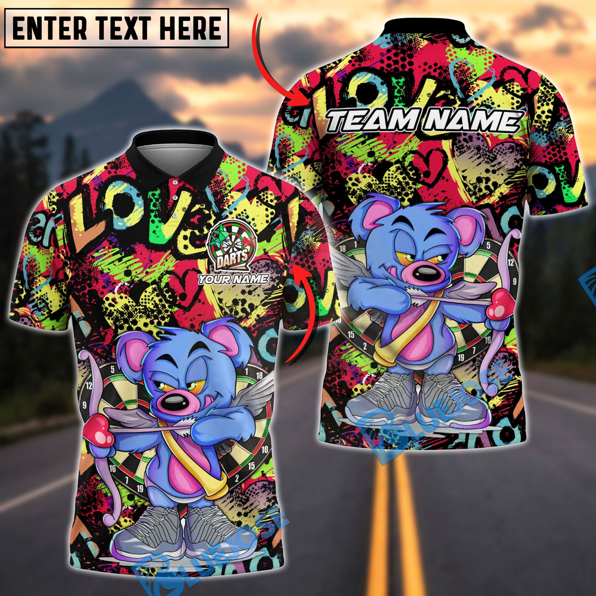 BlueJose Darts Bear Archer Graffiti Love Theme Multicolor Options Personalized Name Shirt (4 Colors)