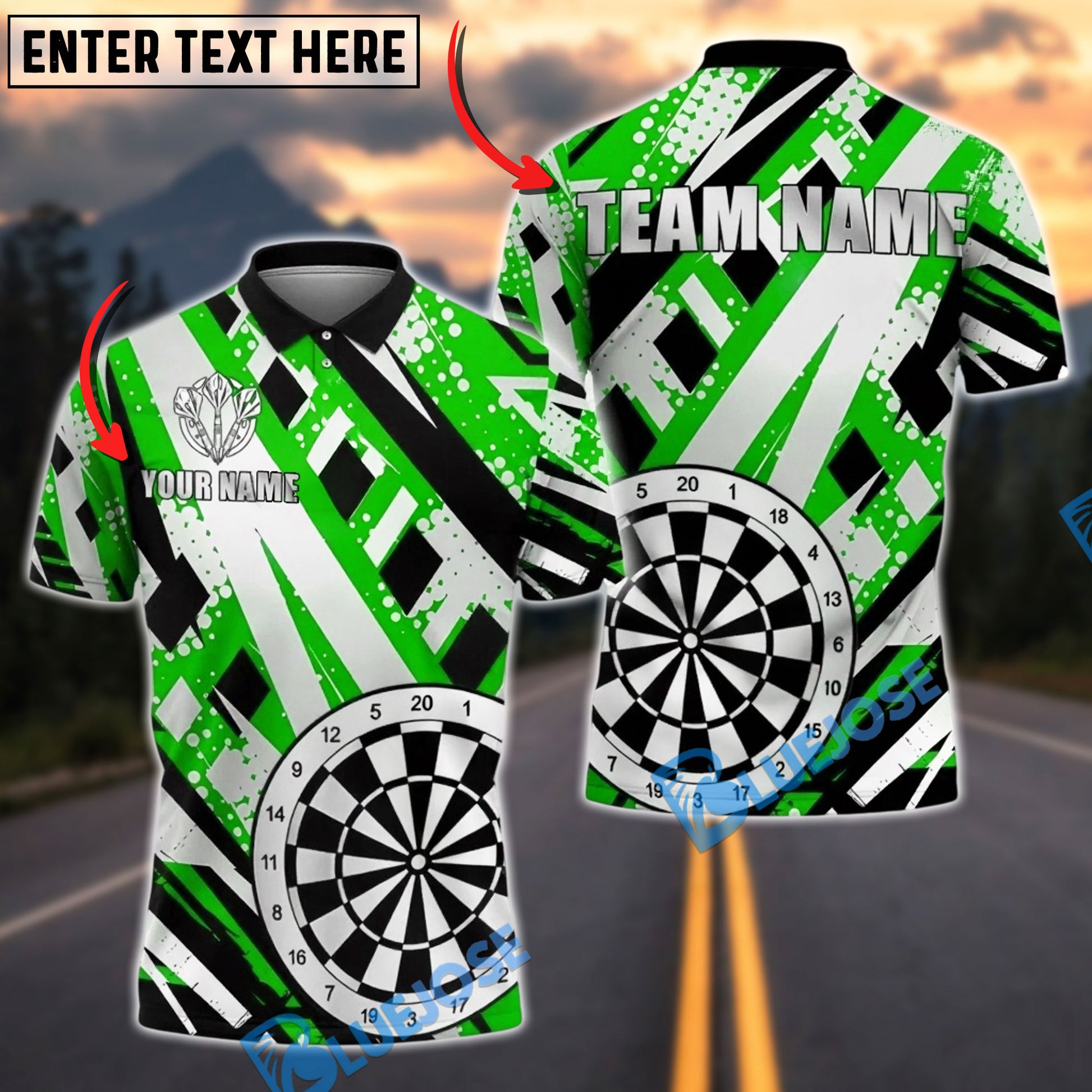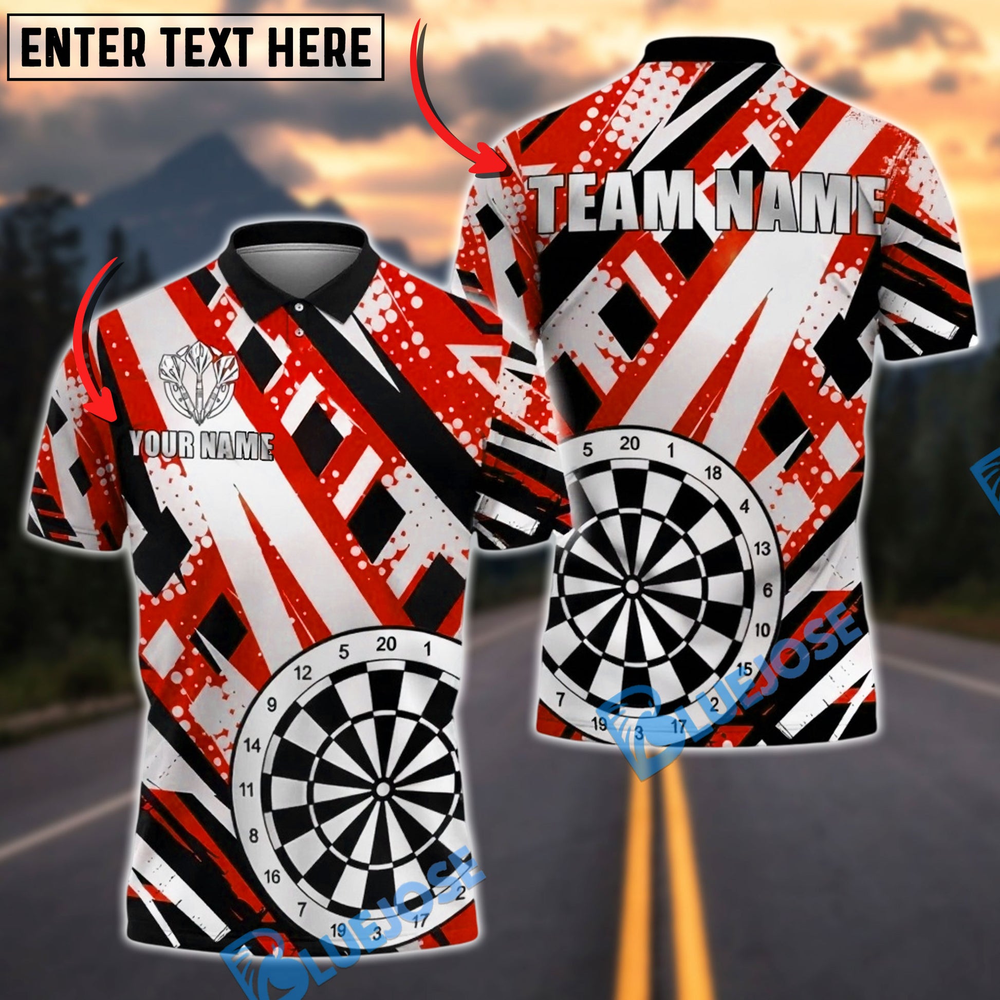BlueJose Darts Black Abstract Dartboard Personalized Name, Team Name Unisex Shirt (4 Colors)