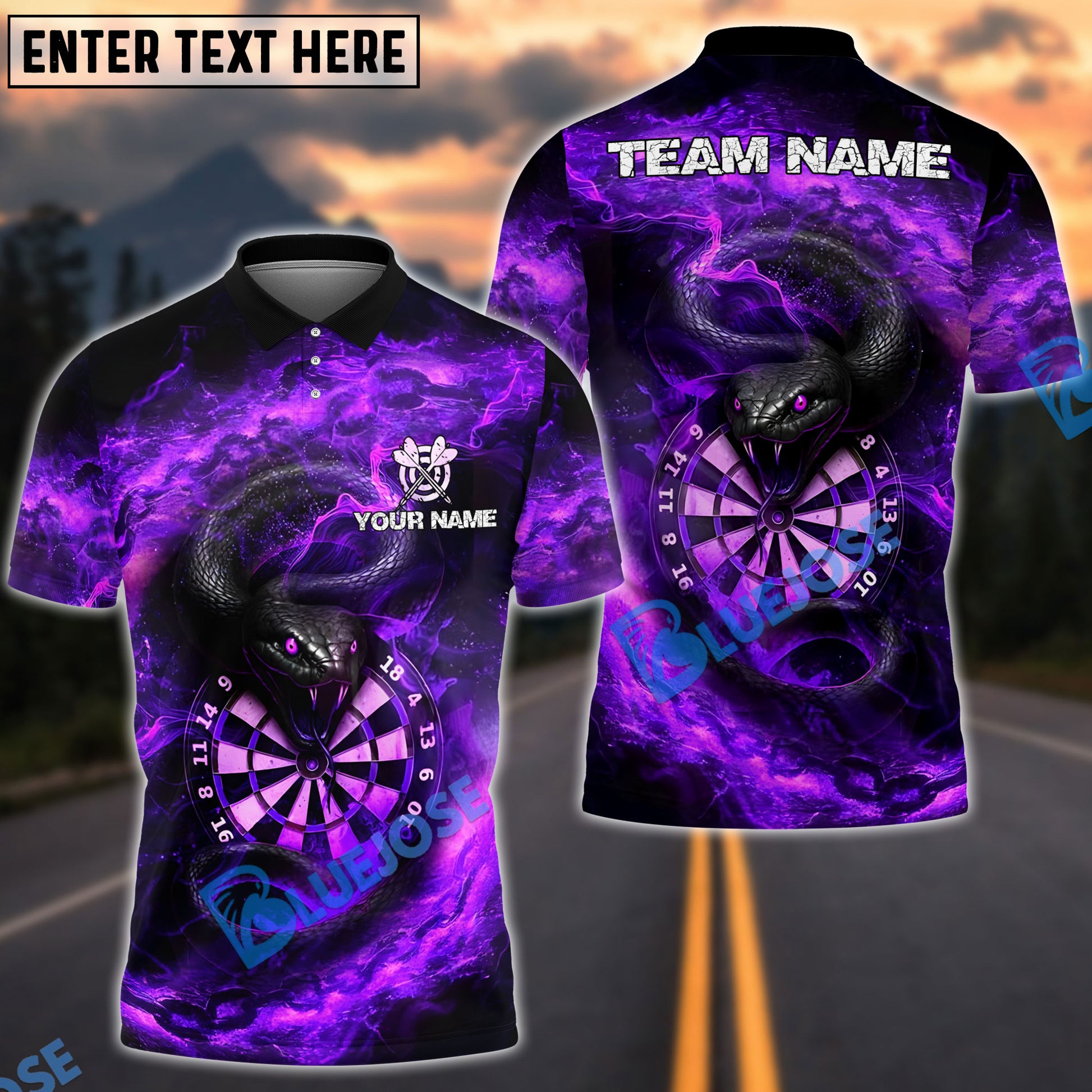 BlueJose Darts Black Snake Fire Flame Customized Name, Team Name 3D Shirt (4 Colors)