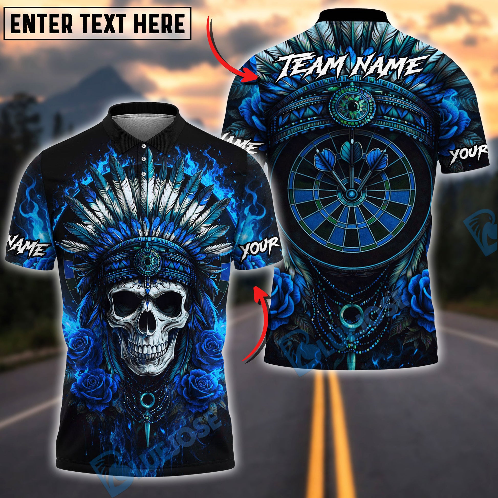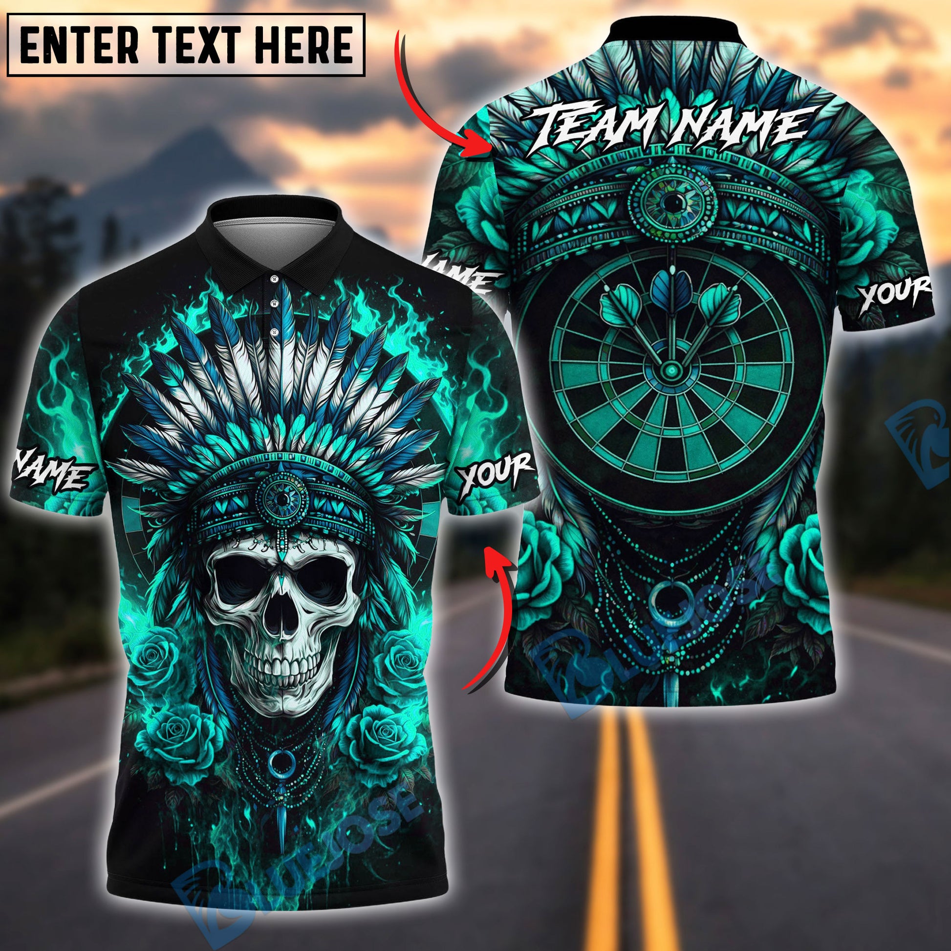 BlueJose Darts Chief Skull Feather Headdress Fire Dartboard Multicolor Options Personalized Name Shirt (4 Colors)