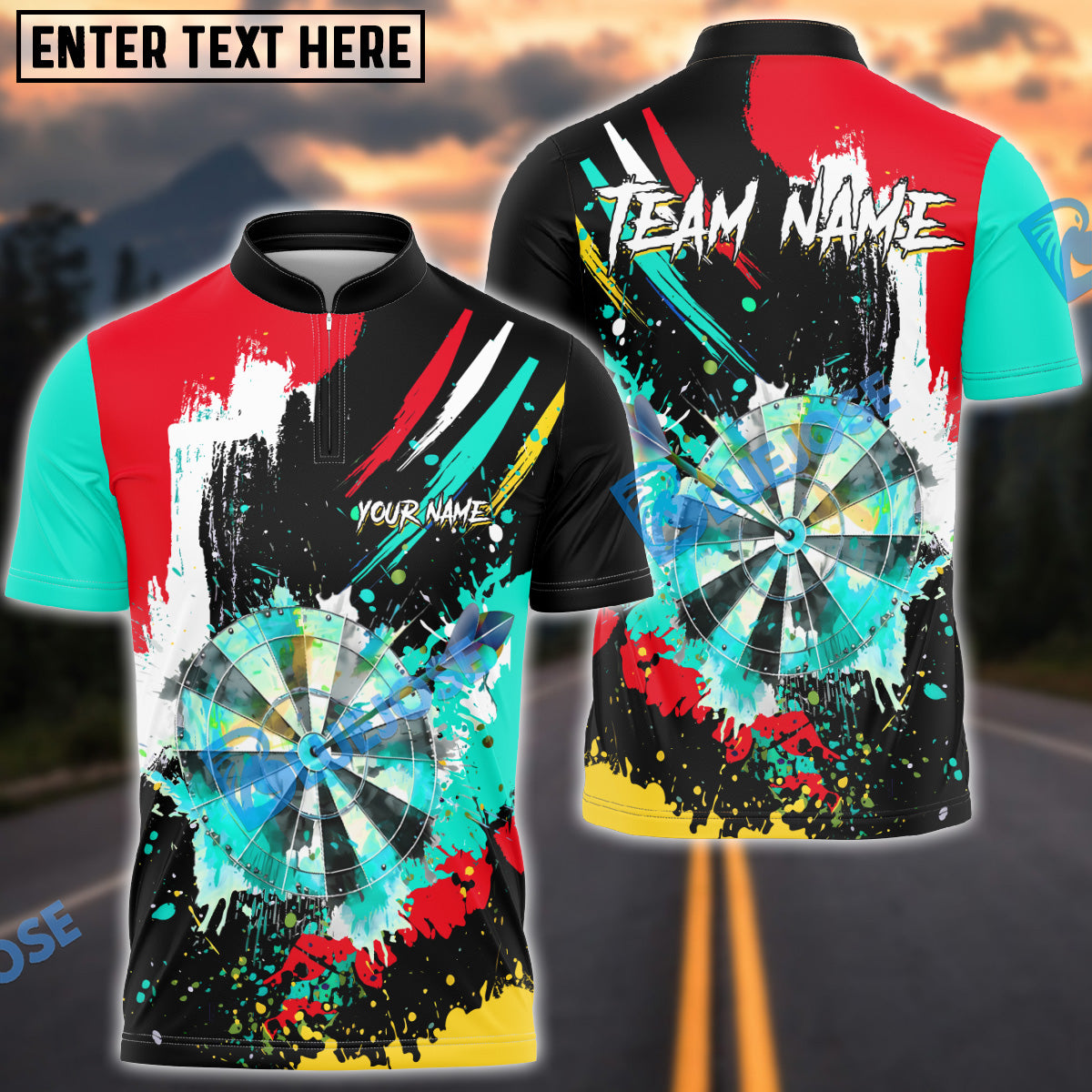 BlueJose Darts Colorful Paint Style Multicolor Options Personalized Name Shirt (4 Colors)