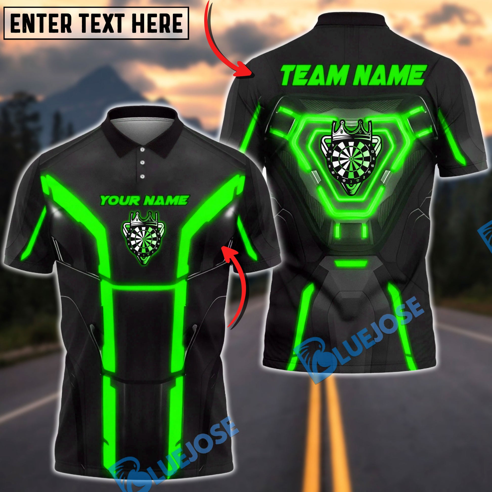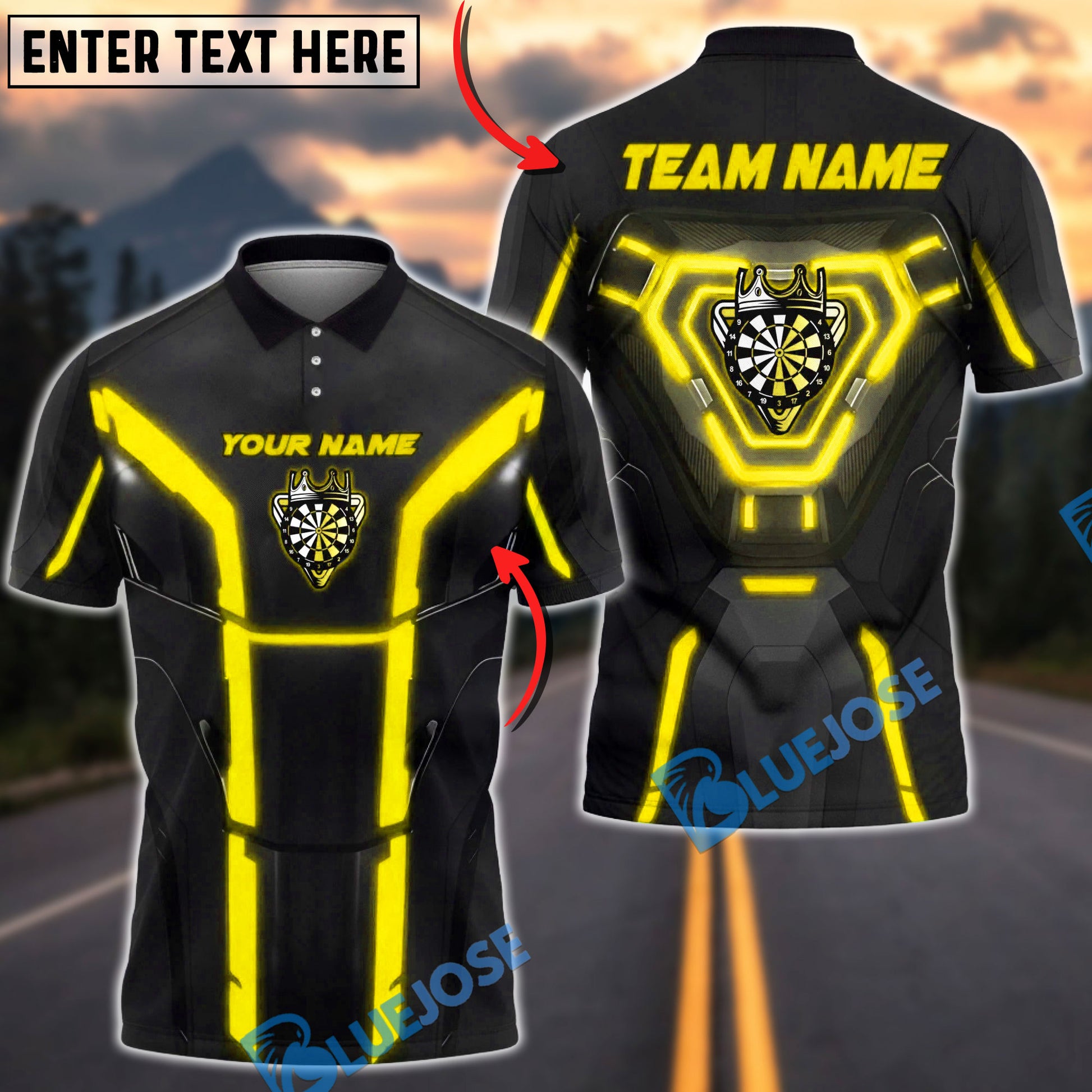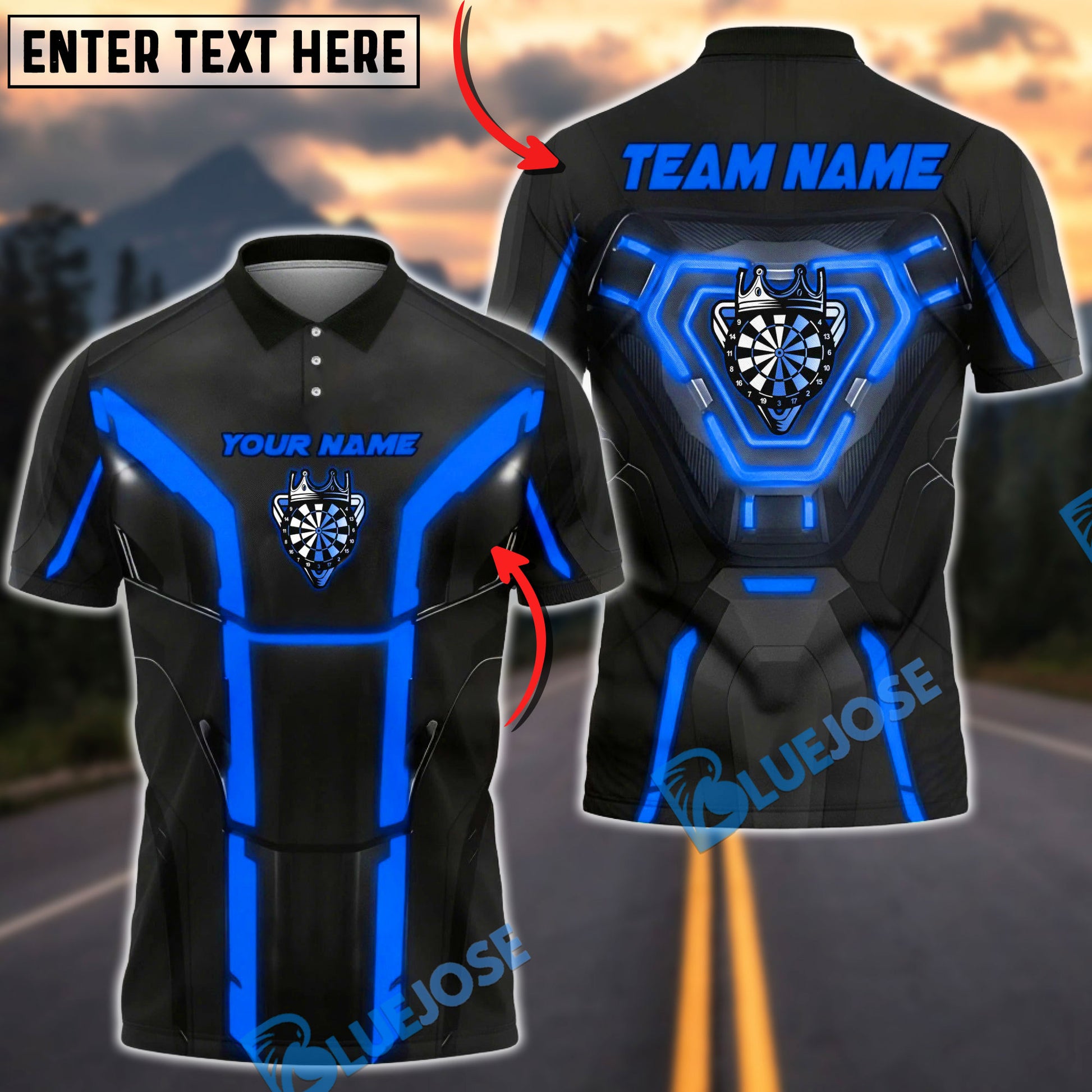 BlueJose Darts Cyber Dartboard Armor Neon Panels Personalized Name, Team Name Unisex Shirt (6 Colors)