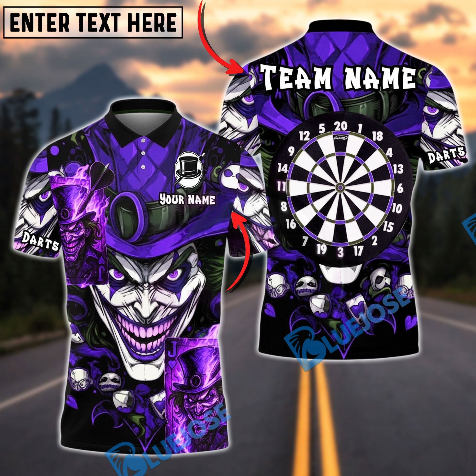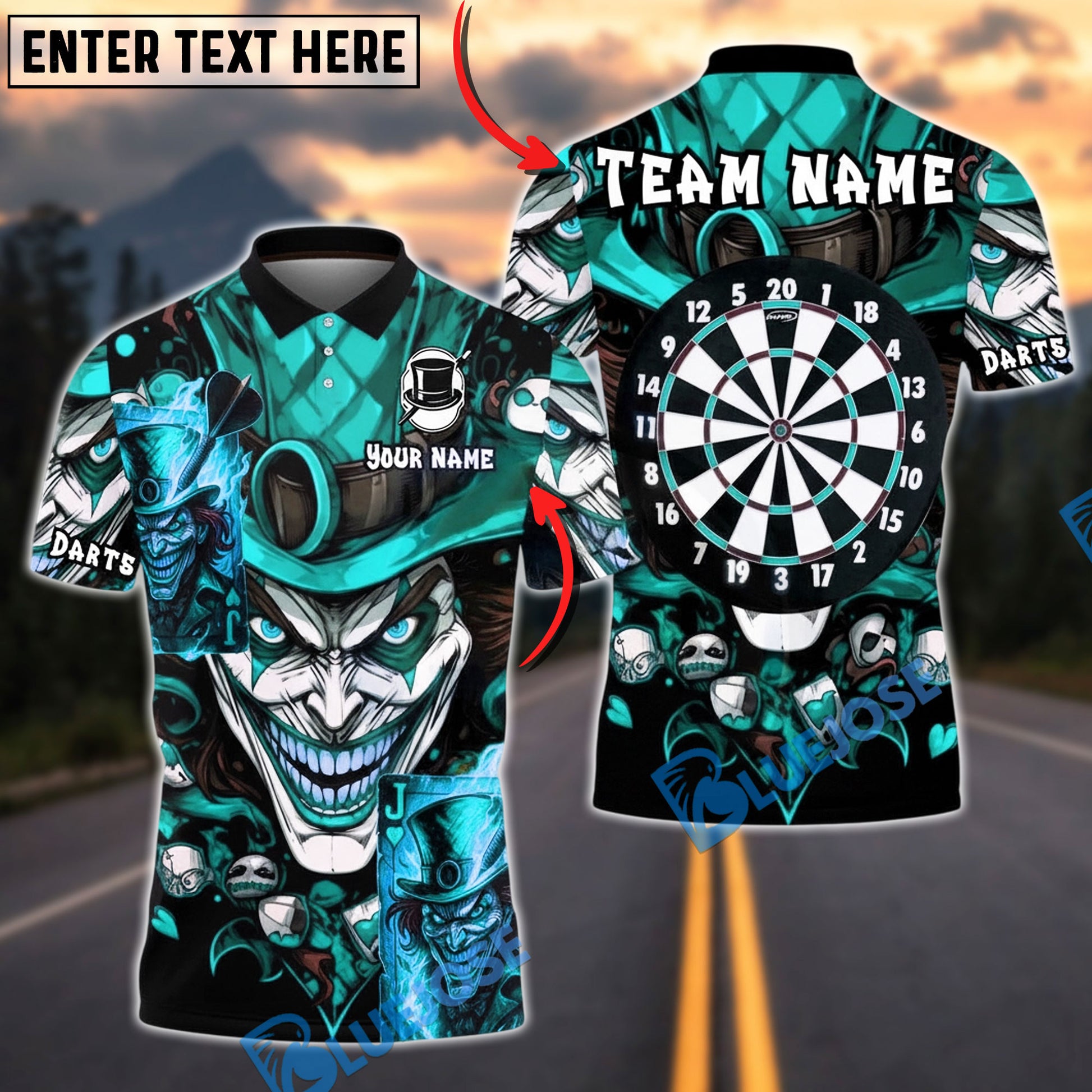 BlueJose Darts Dark Joker Card Dartboard Personalized Name, Team Name Unisex Shirt (4 Colors)