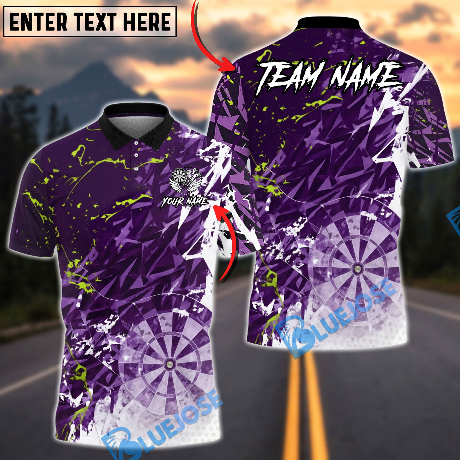 BlueJose Darts Dartboard Geometric Shatter Effect Multicolor Options Personalized Name Shirt (4 Colors)