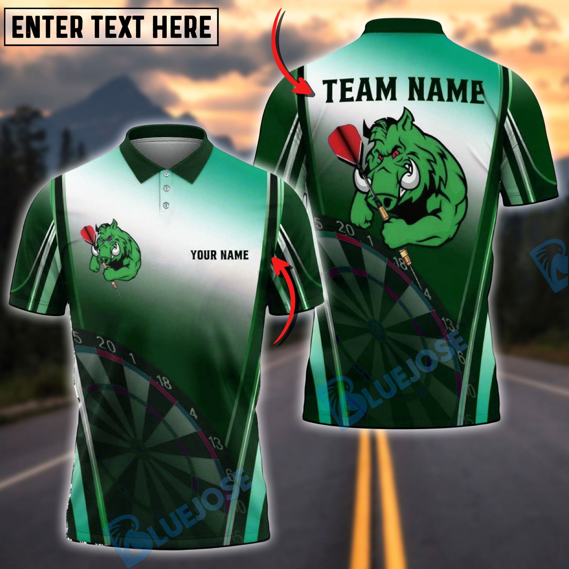 BlueJose Darts Boar Dartboard Gradient Multicolor Options Personalized Name Shirt (4 Colors)