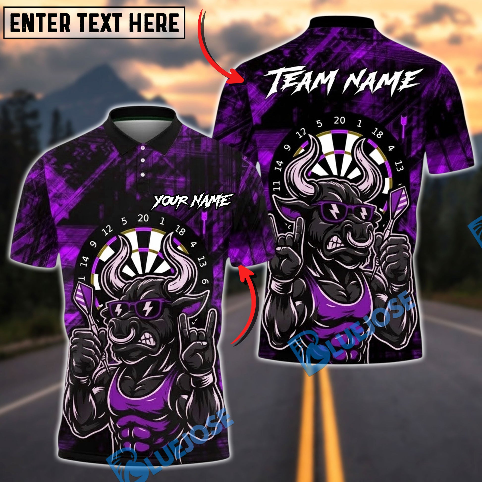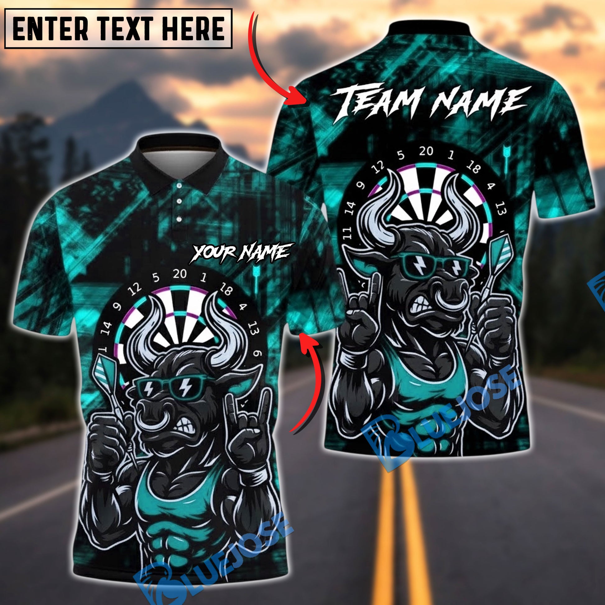 BlueJose Darts Dartboard Muscle Bull Rock N’ Roll Grunge Personalized Name, Team Name Unisex Shirt (4 Colors)