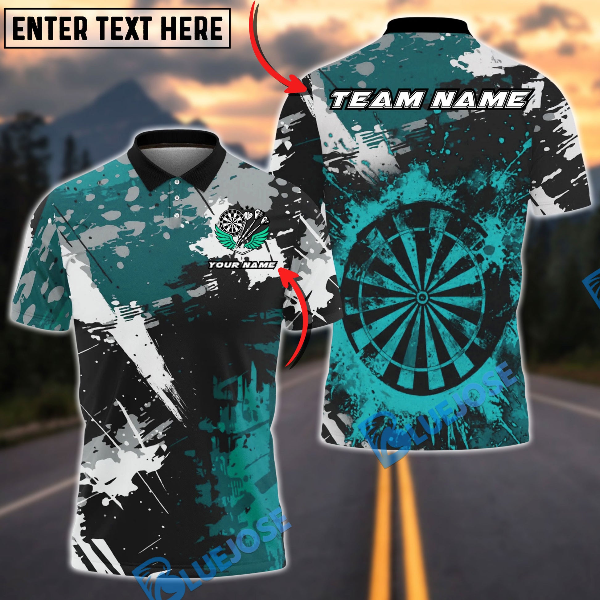 BlueJose Darts Dartboard Paint Splash Multicolor Options Personalized Name Shirt (4 Colors)
