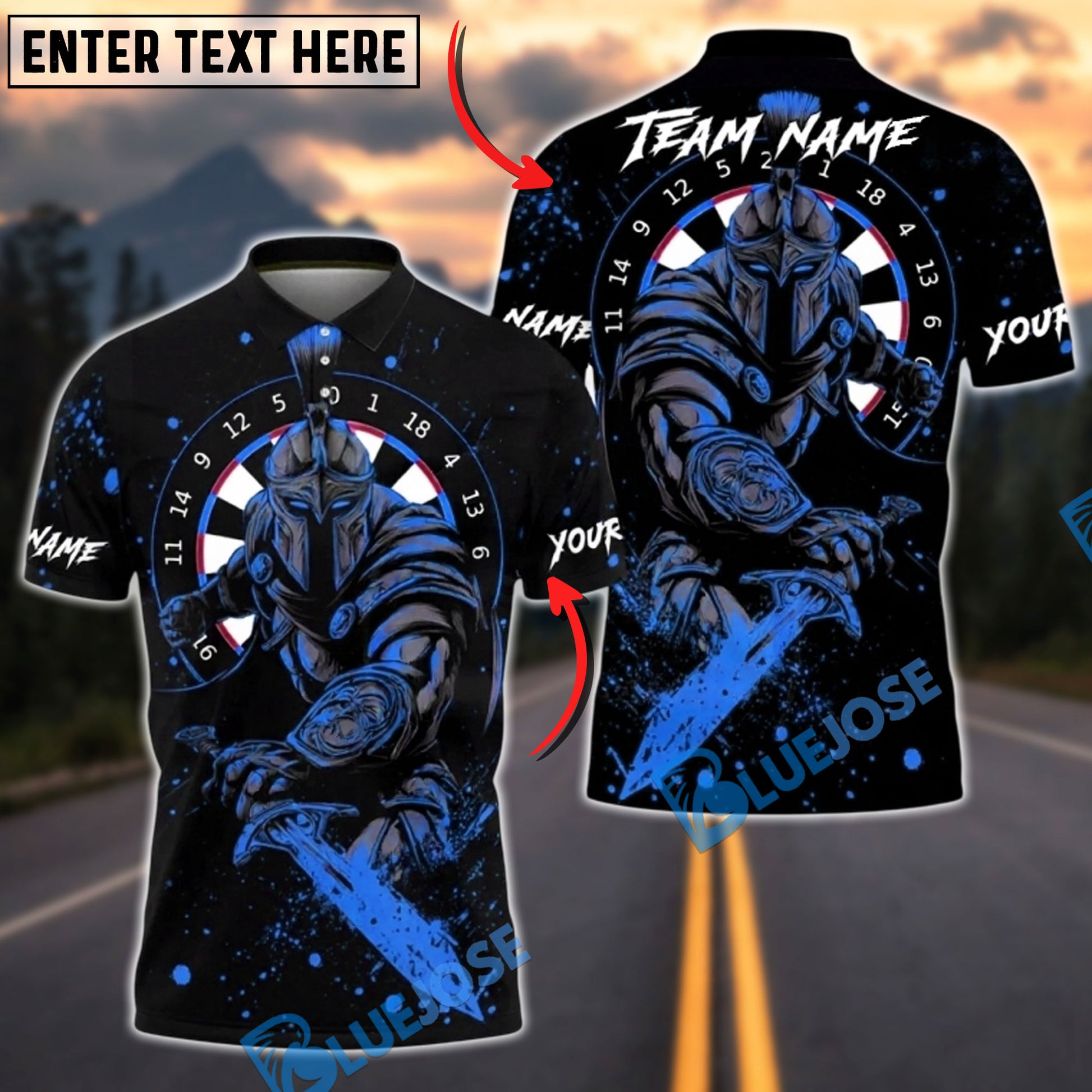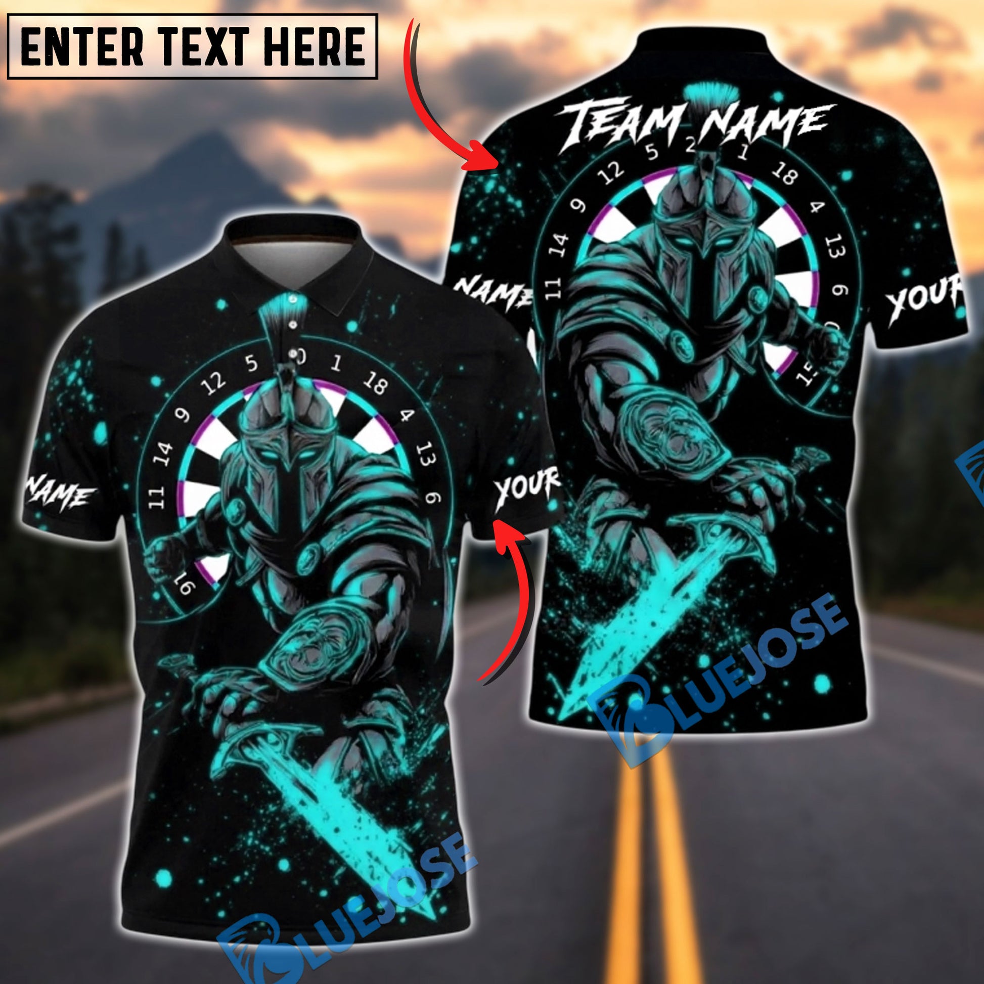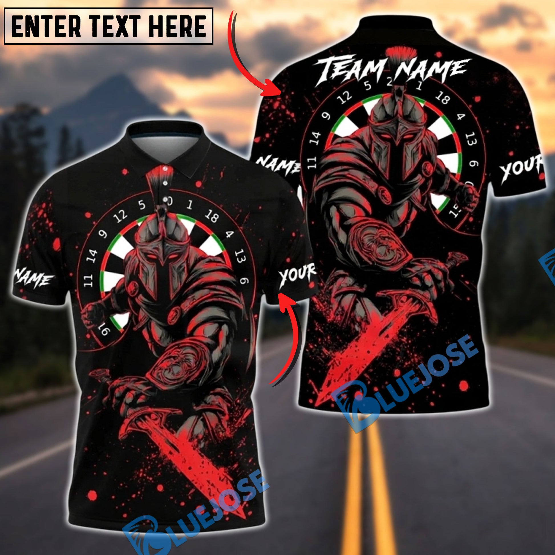 BlueJose Darts Dartboard Spartan Warrior Blood Slash Personalized Name, Team Name Unisex Shirt (4 Colors)