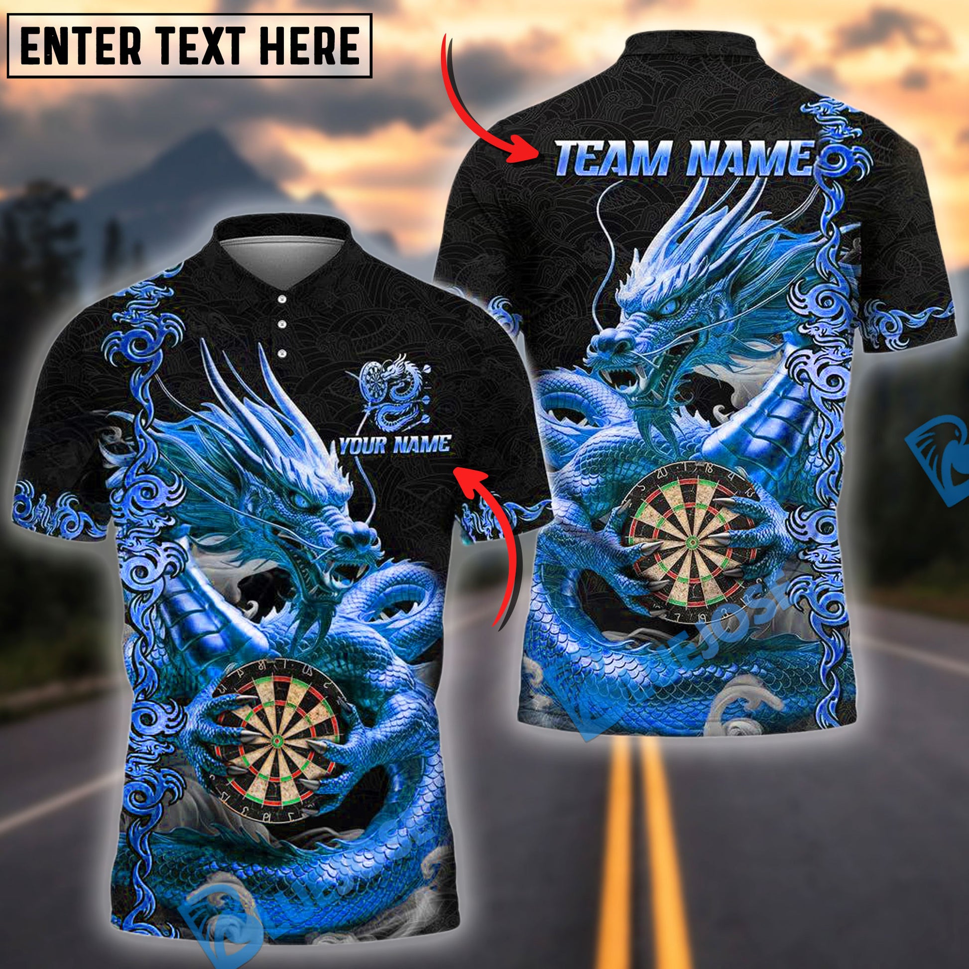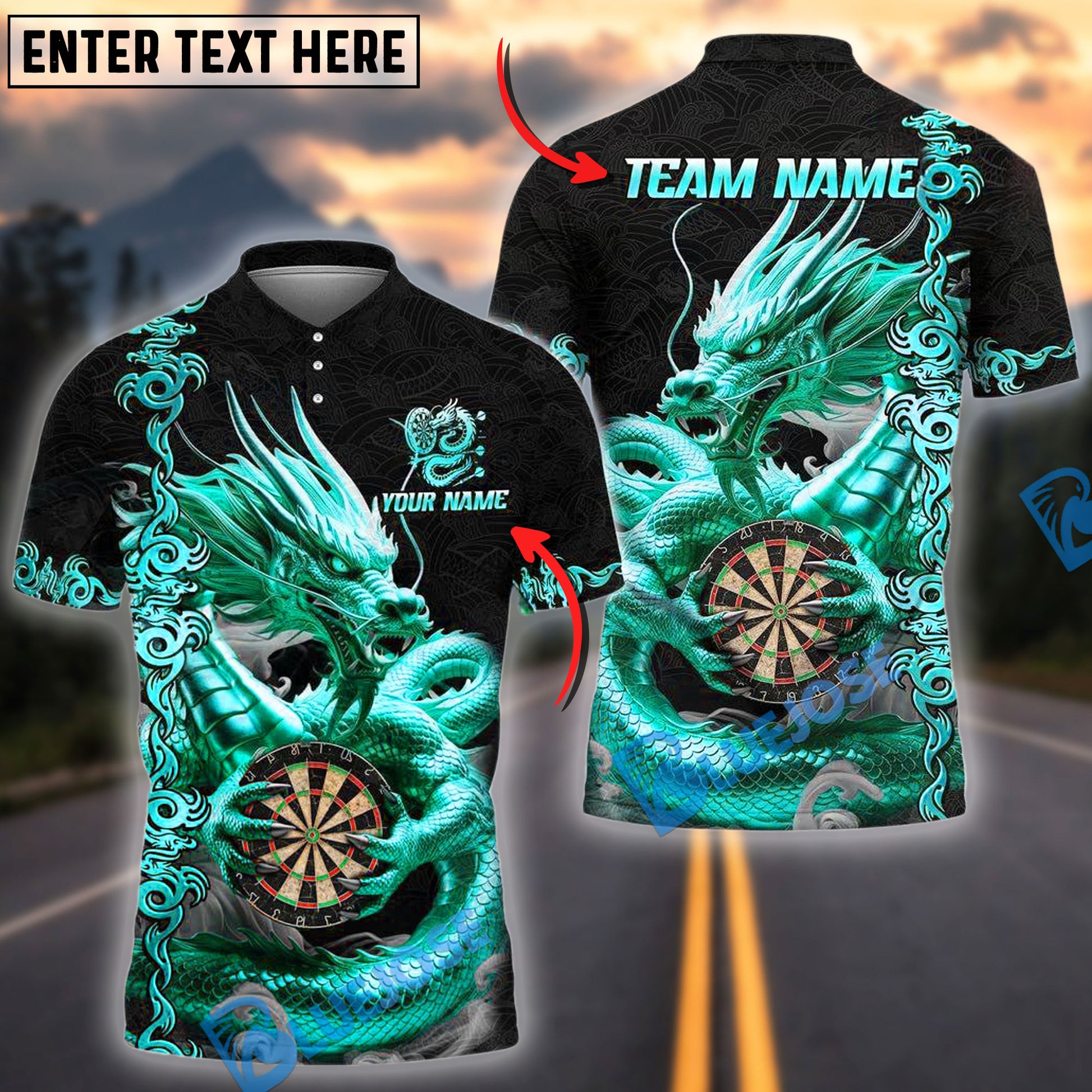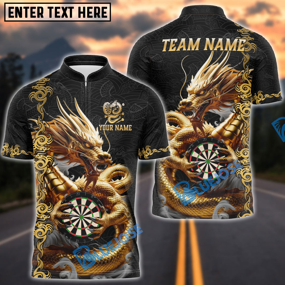 BlueJose Darts Dragon Golden Attire Personalized Name, Team Name Shirt (4 Colors)