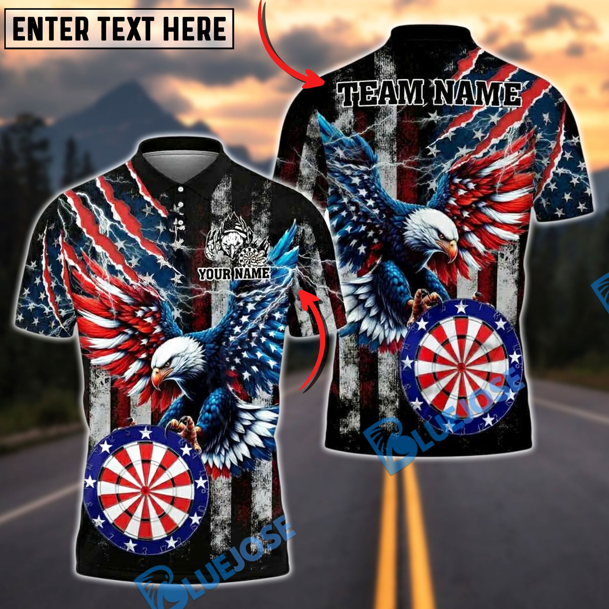 BlueJose Darts Eagle American Flag Lightning Personalized Name Shirt