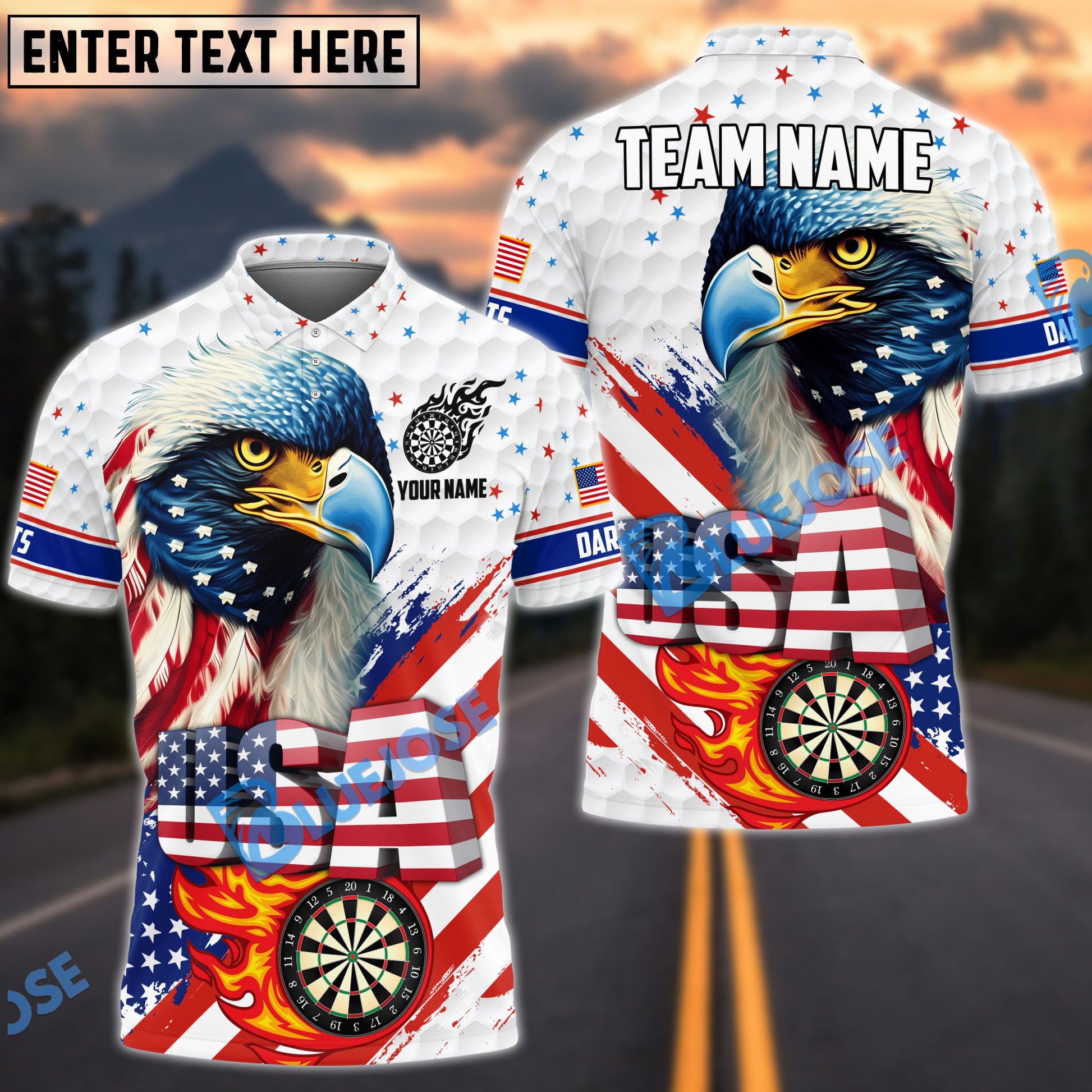 BlueJose Darts Eagle Flag Star Customized Name, Team Name 3D Shirt (4 Colors)
