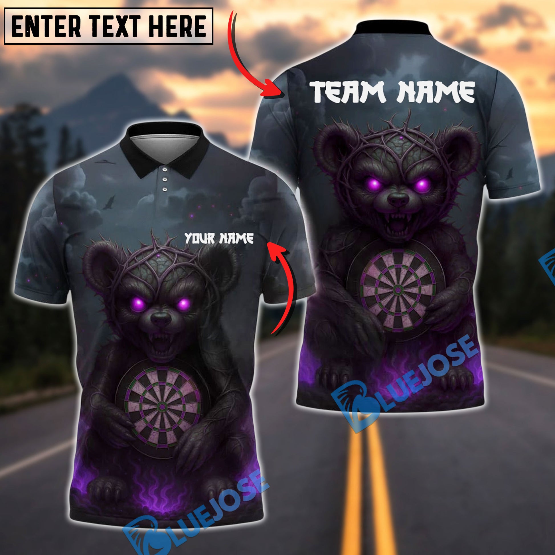 BlueJose Darts Evil Teddy Bear with Dartboard Customized Name, Team Name 3D Shirt (4 Colors)