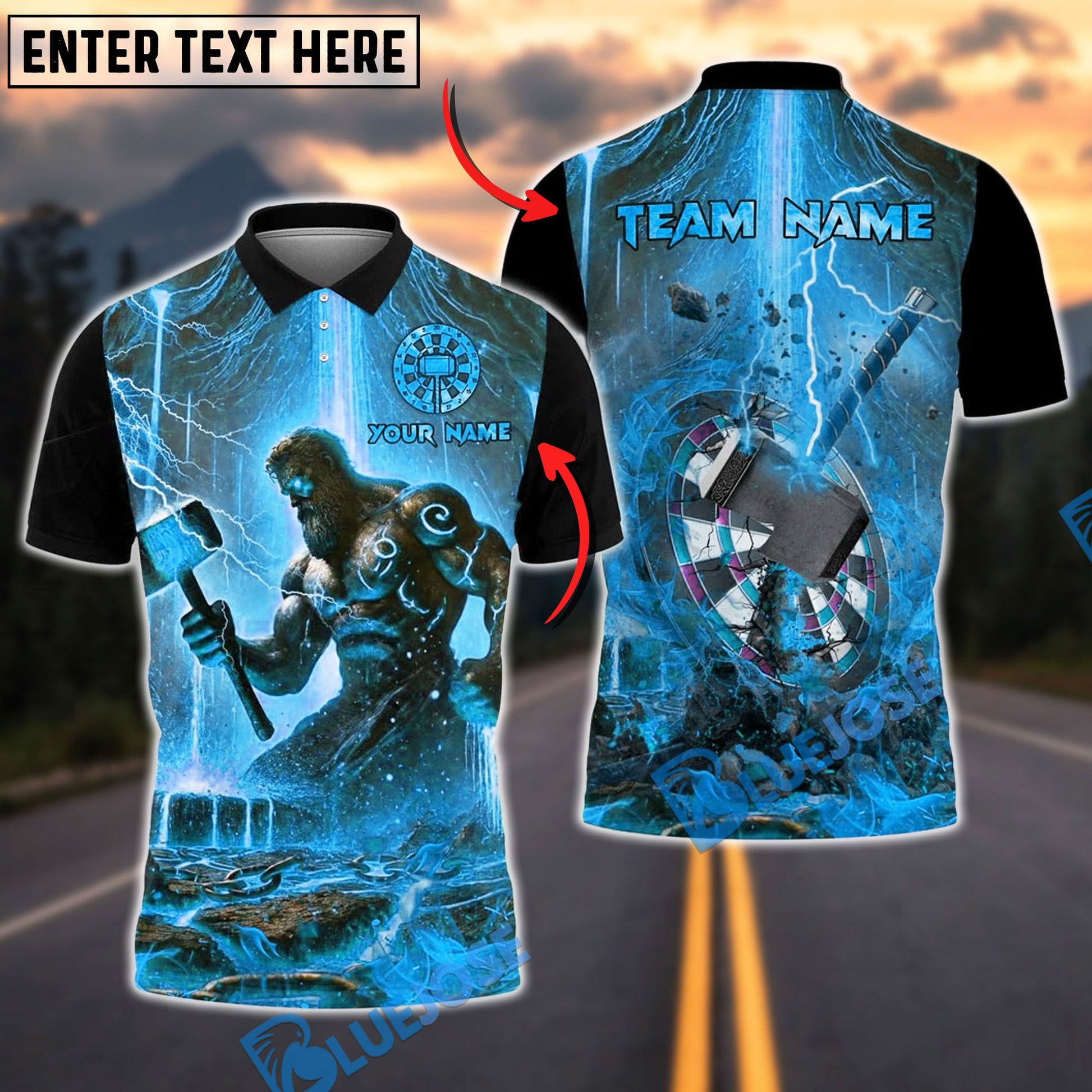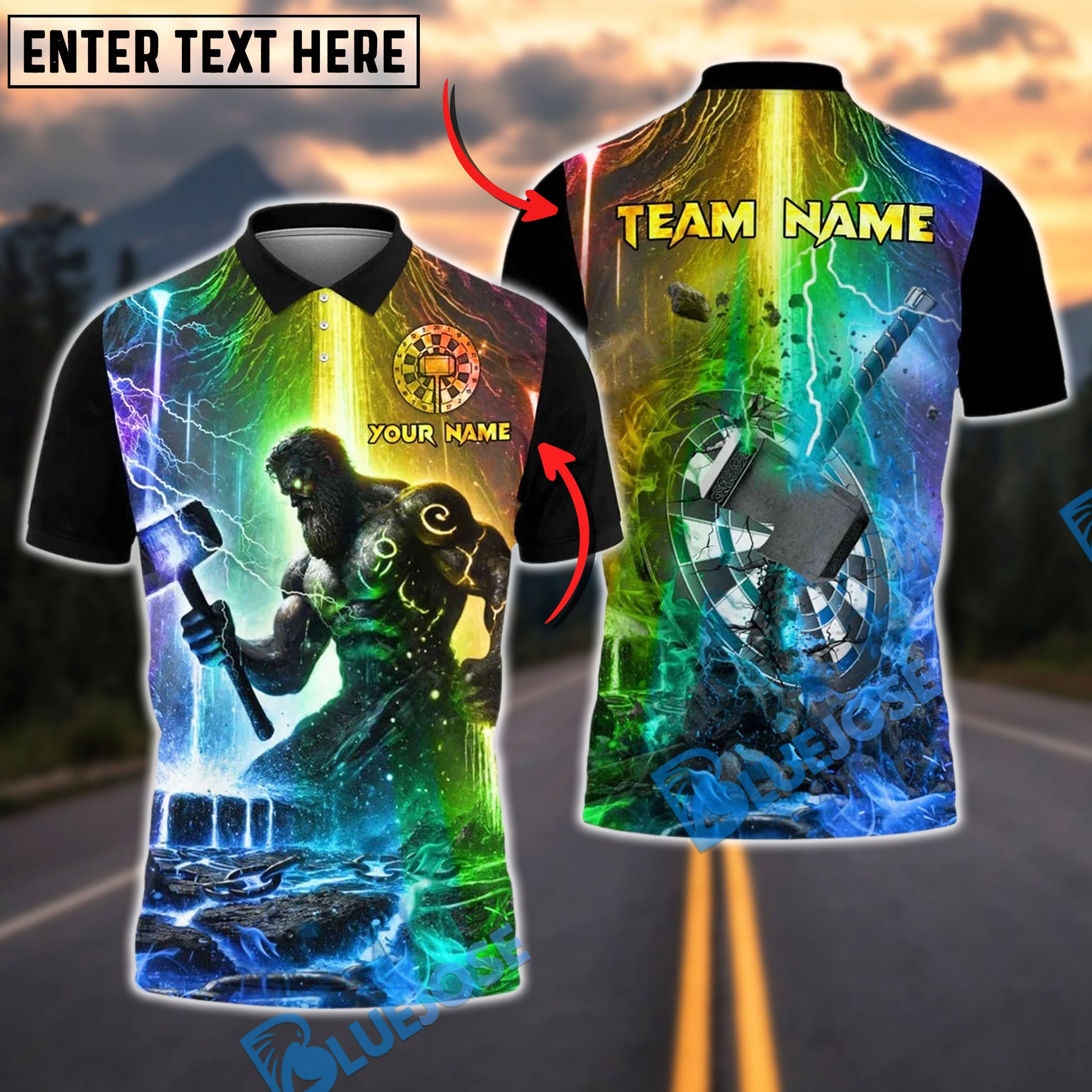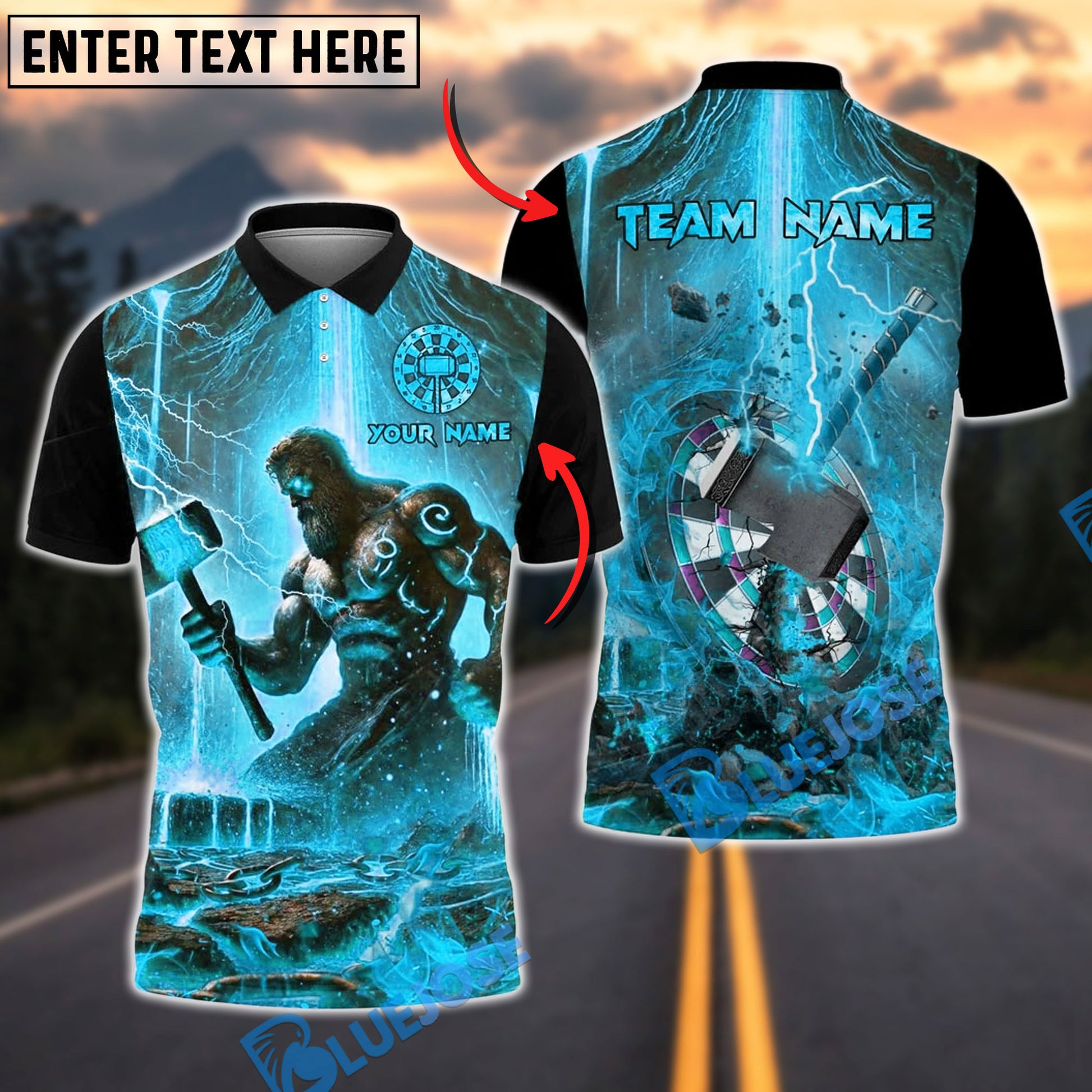 BlueJose Darts Fantasy Warrior Thunder Hammer Personalized Name, Team Name Shirt (6 Colors)