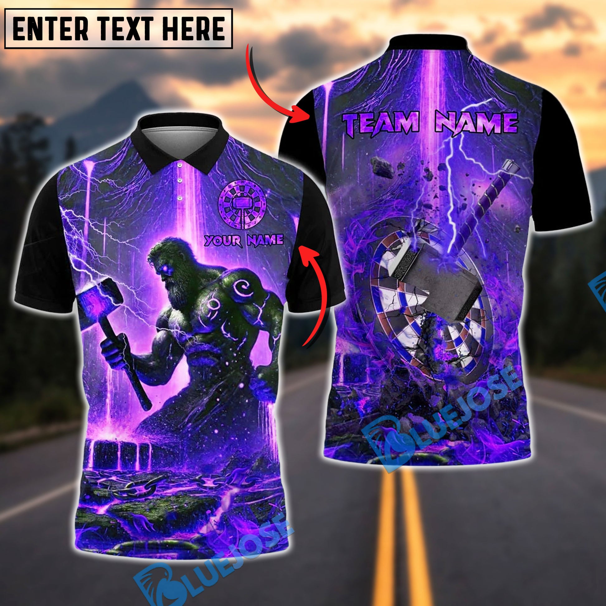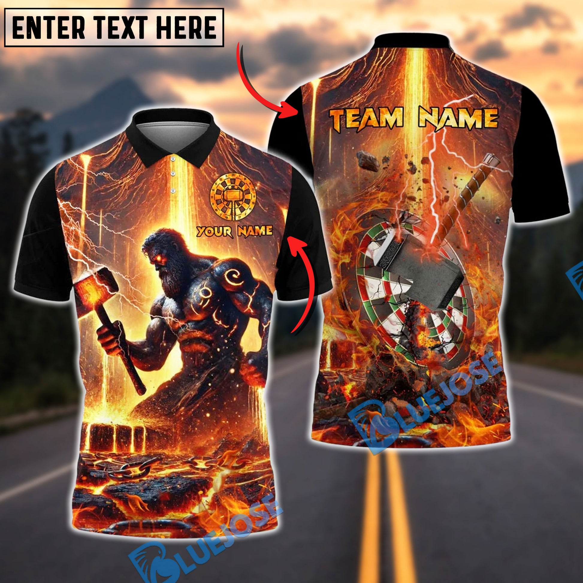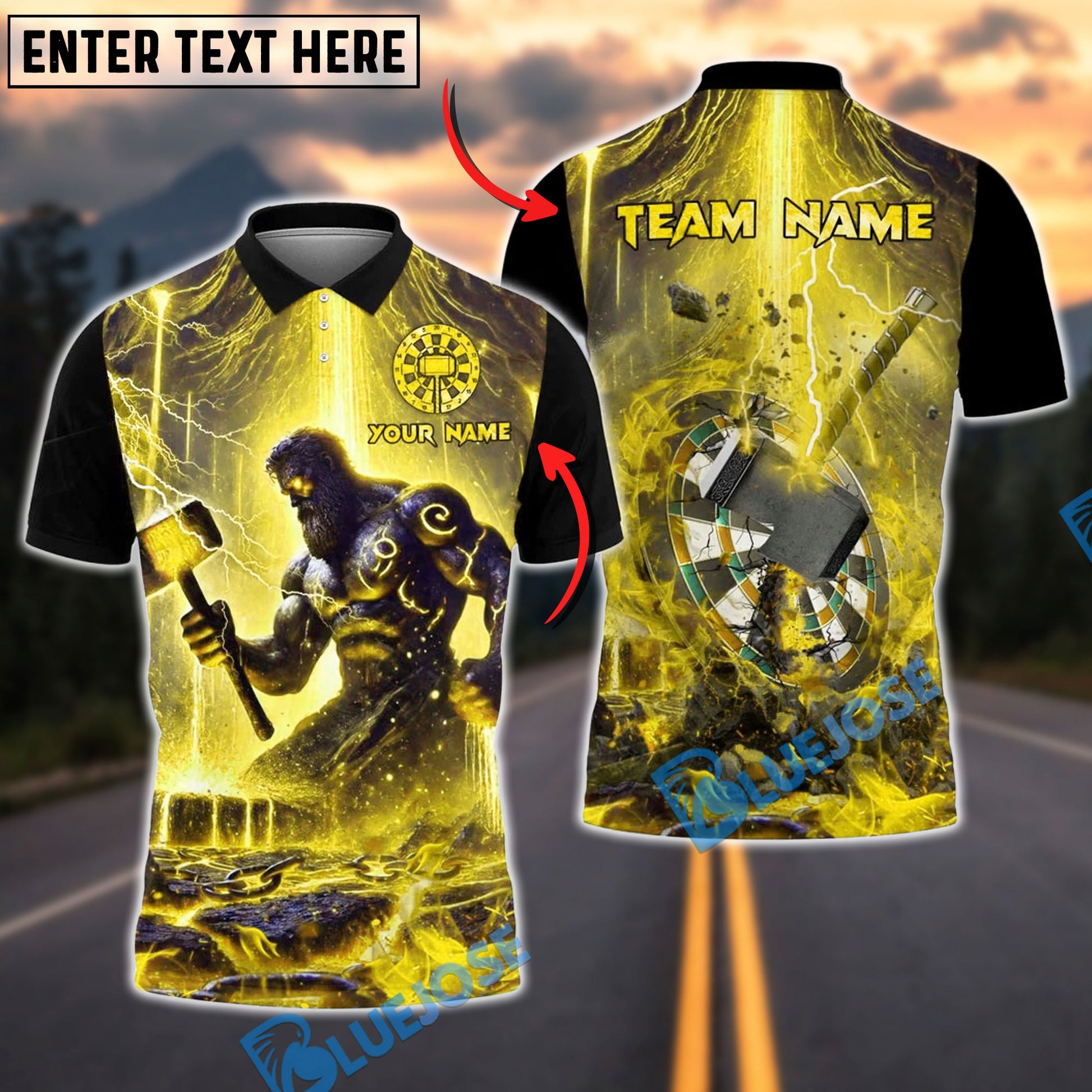 BlueJose Darts Fantasy Warrior Thunder Hammer Personalized Name, Team Name Shirt (6 Colors)
