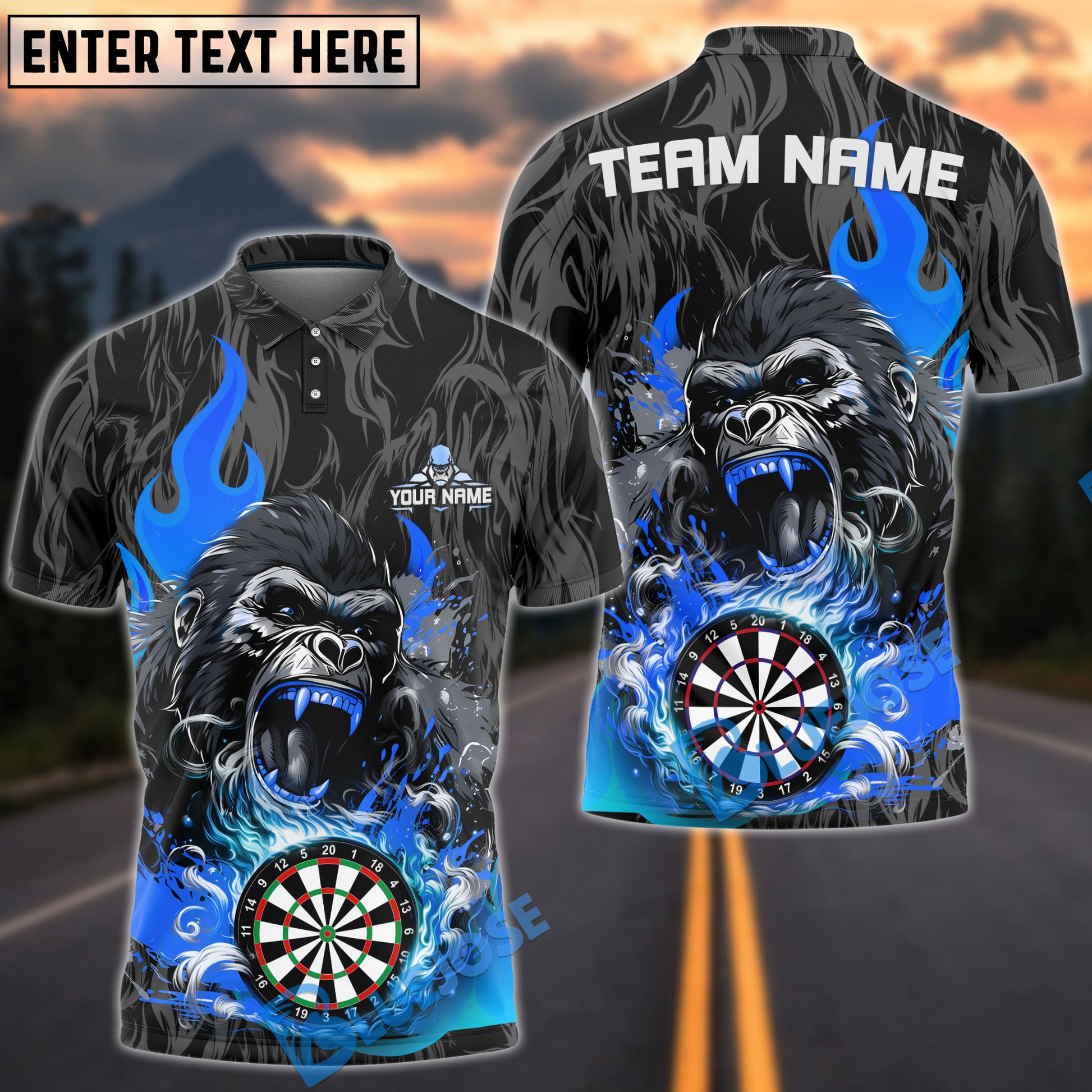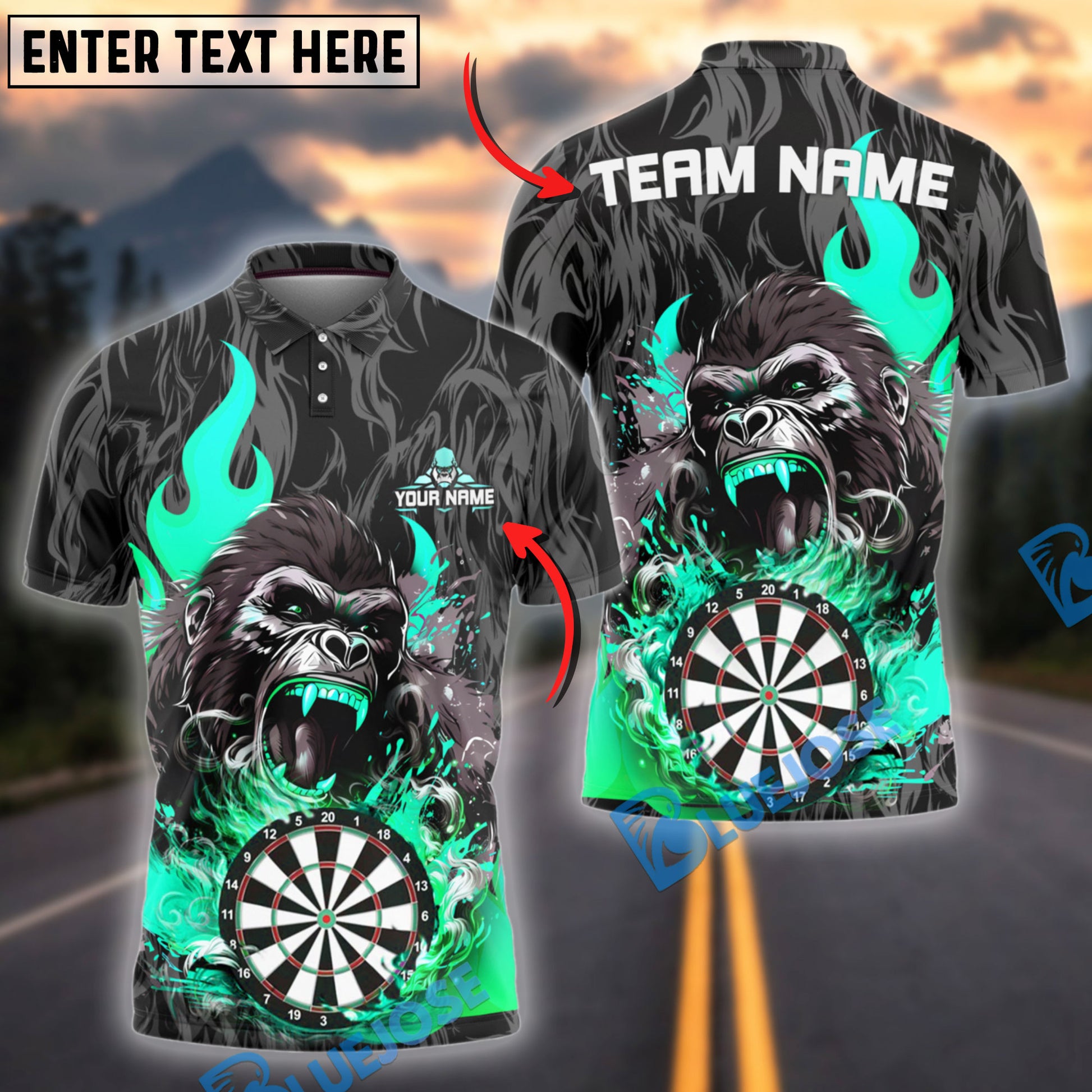 BlueJose Darts Fierce Gorilla with Flaming Dartboard Multicolor Options Personalized Name Shirt (4 Colors)