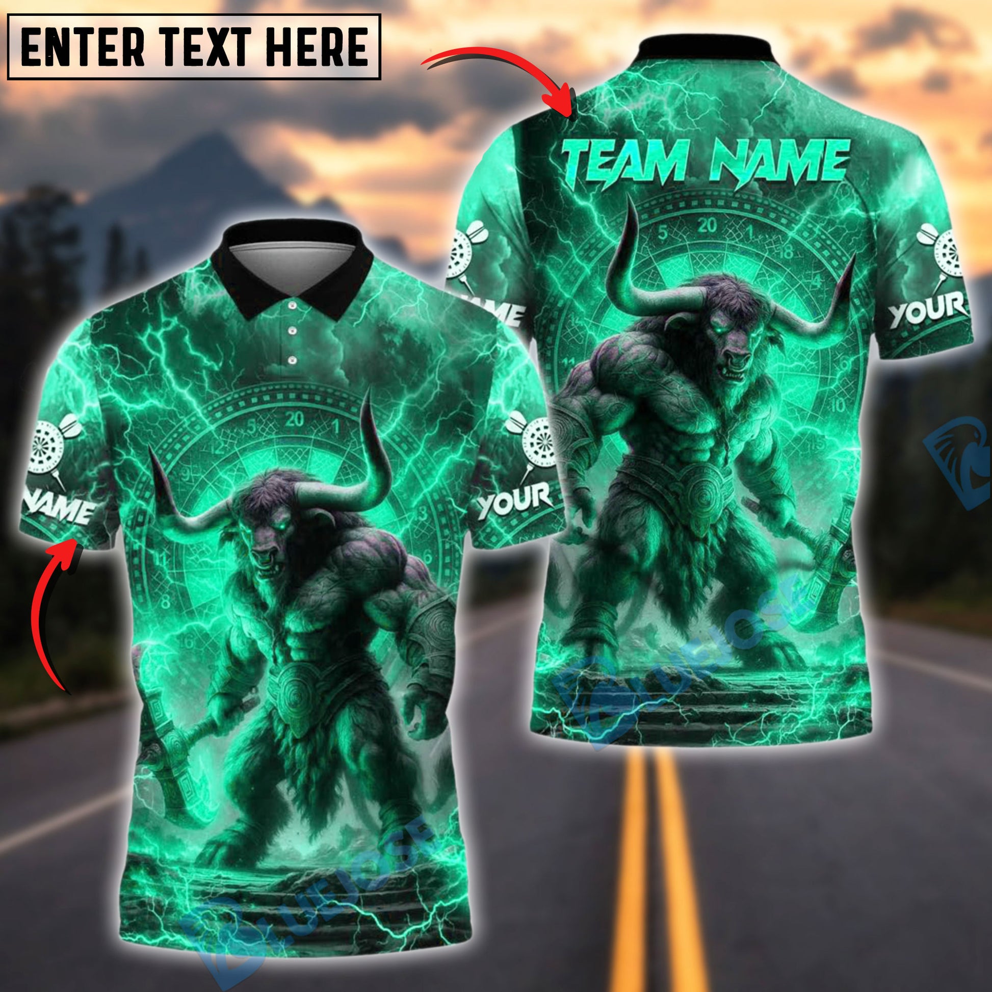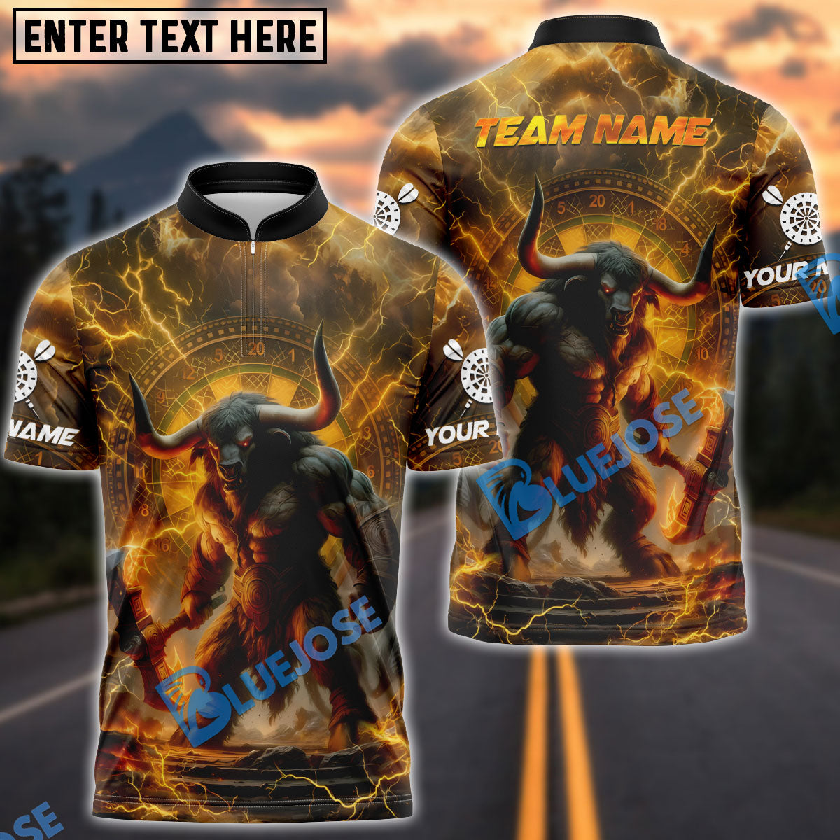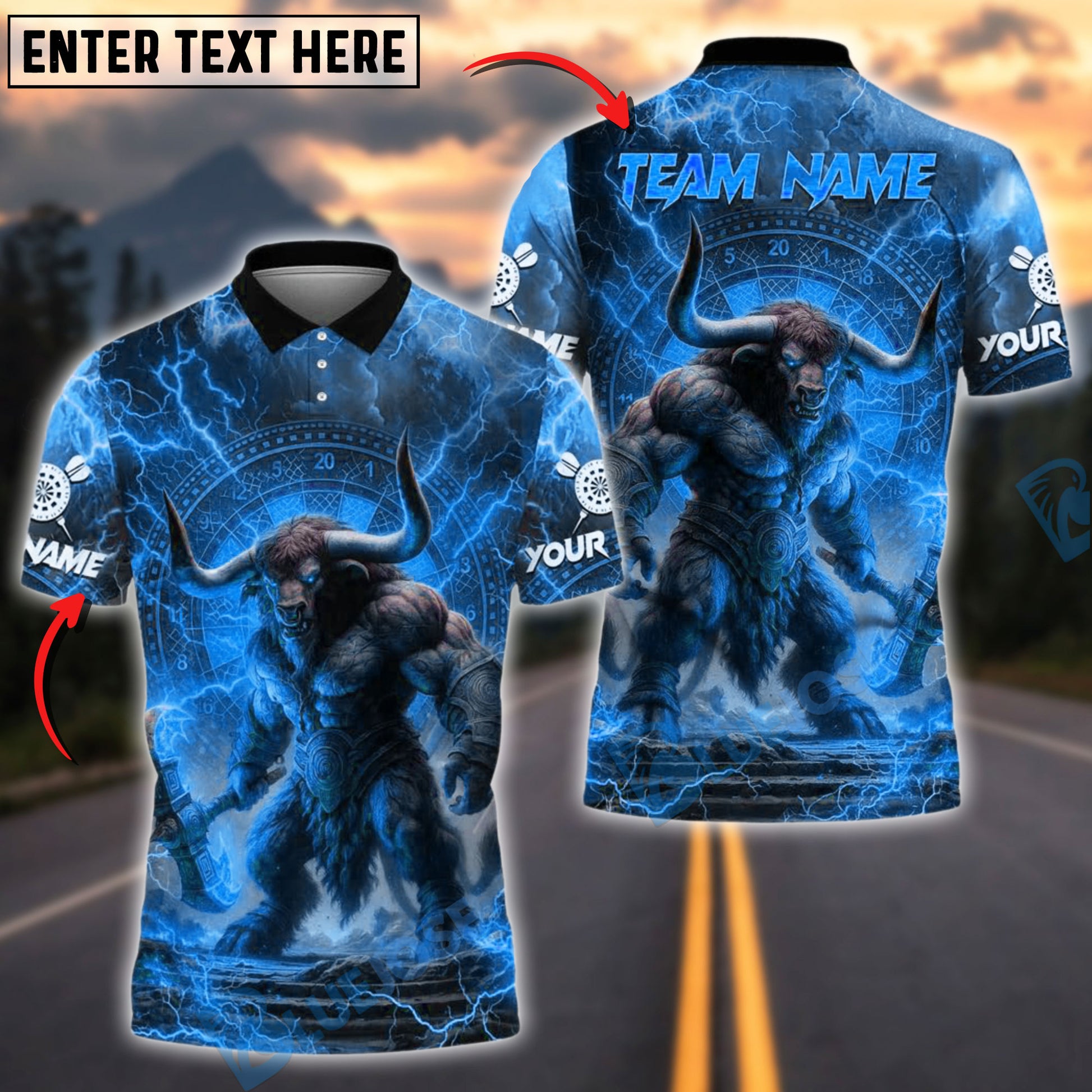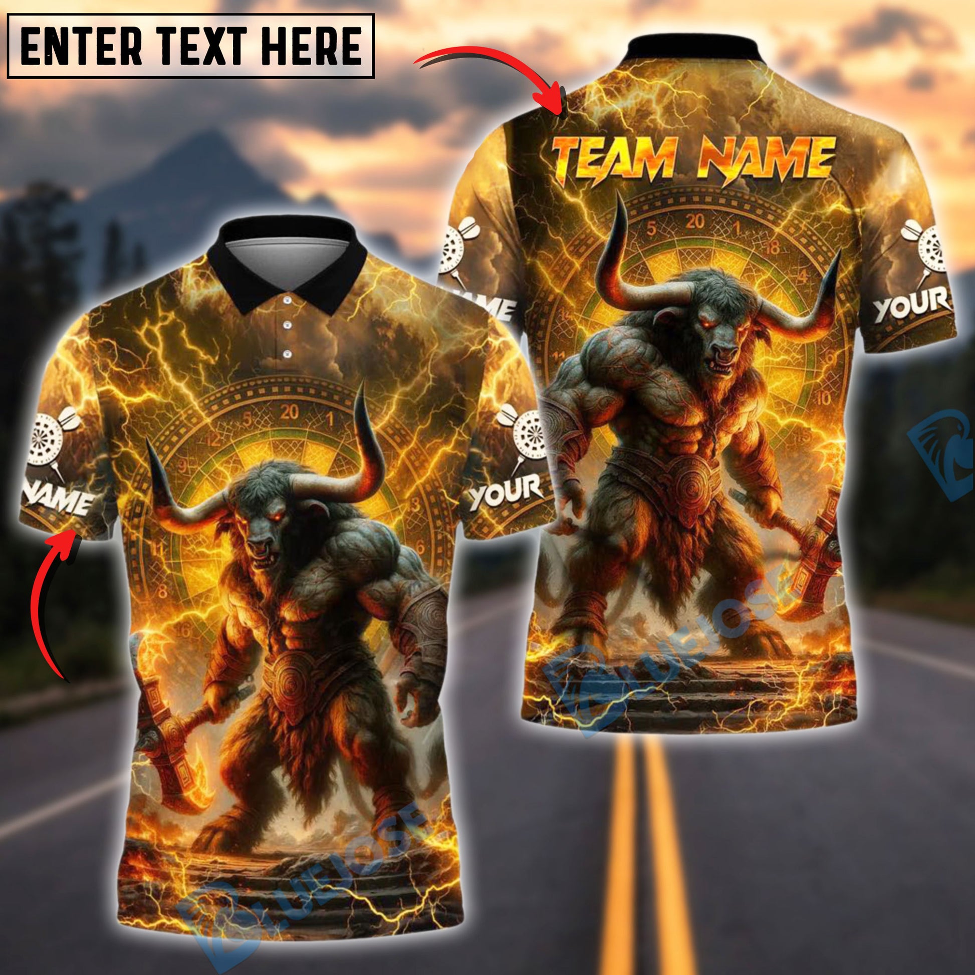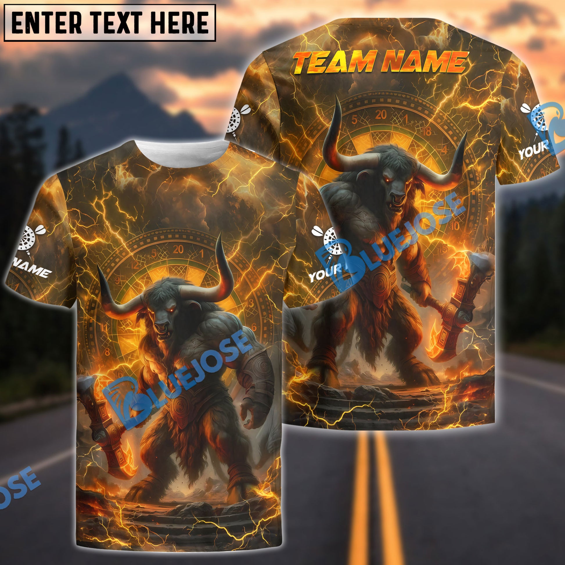 BlueJose Darts Fierce Minotaur Thunder Personalized Name, Team Name Shirt (4 Colors)
