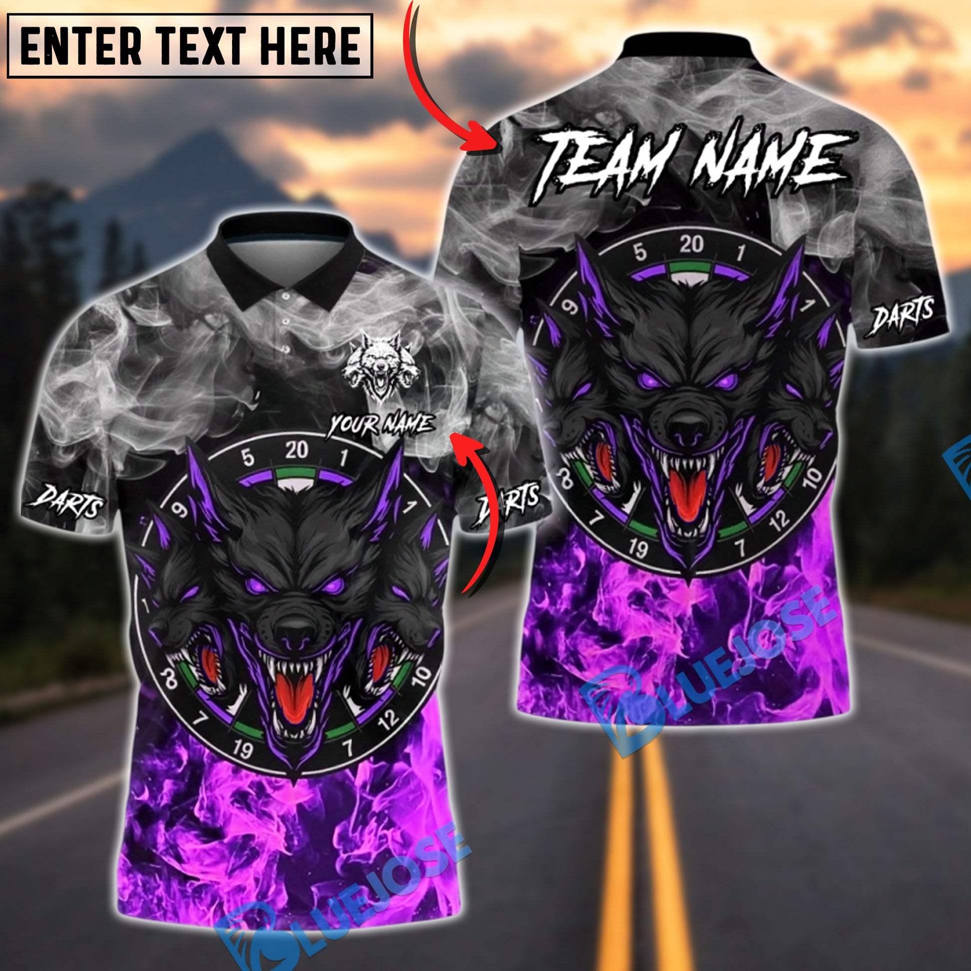 BlueJose Darts Fierce Wolf Darts Flame Art Personalized Name, Team Name Unisex Shirt (4 Colors)