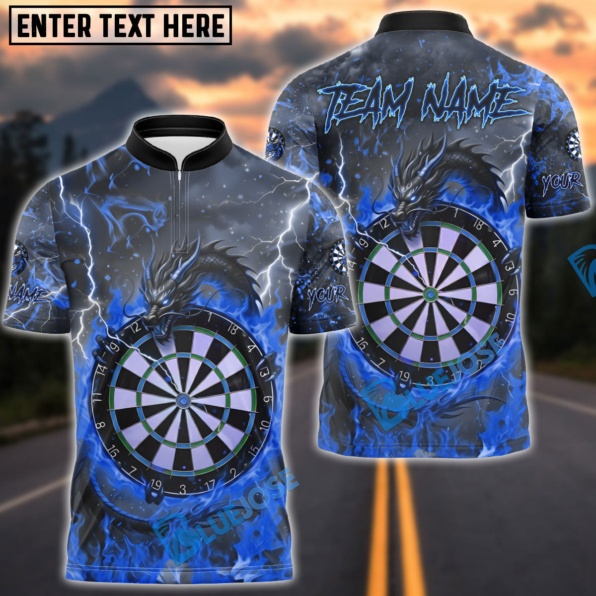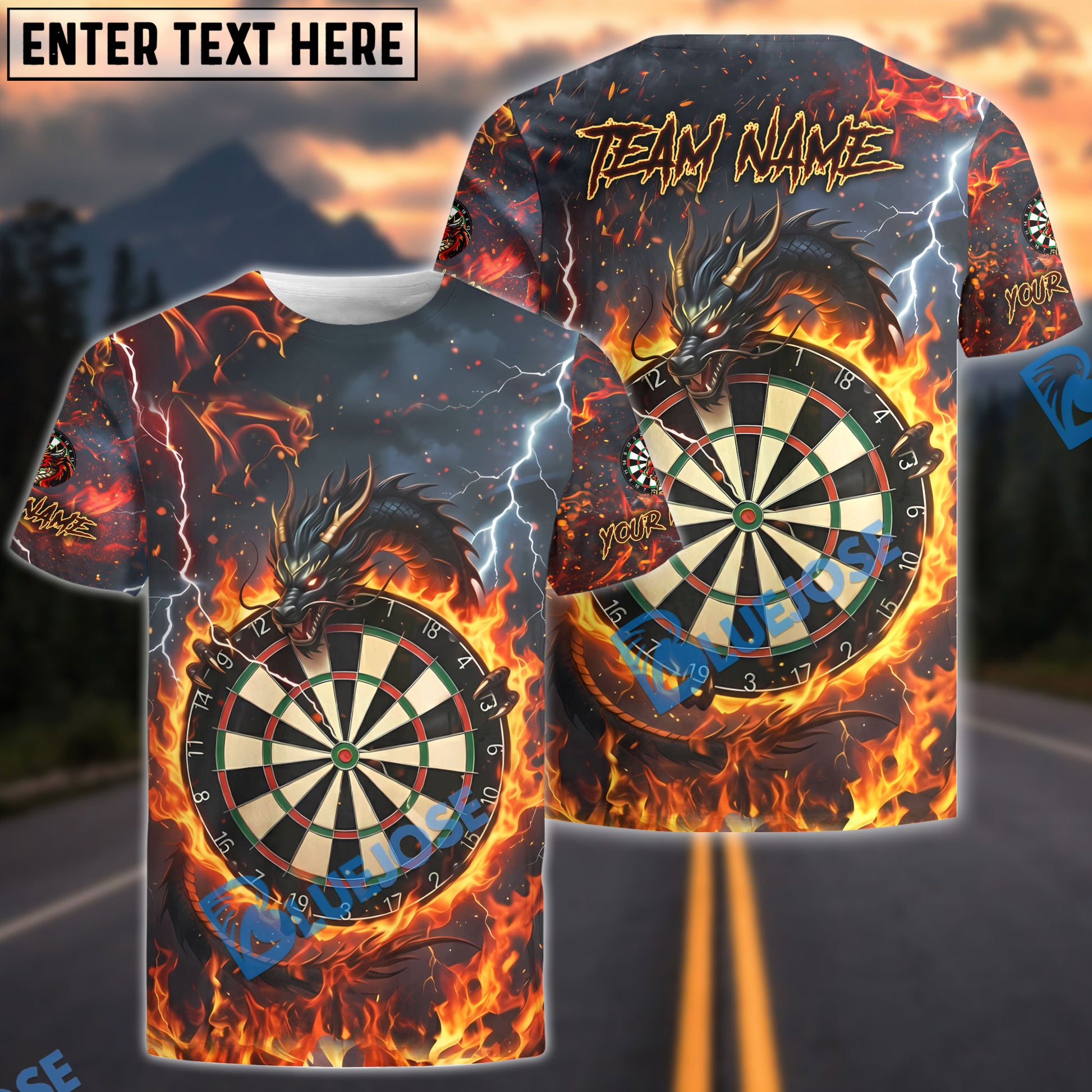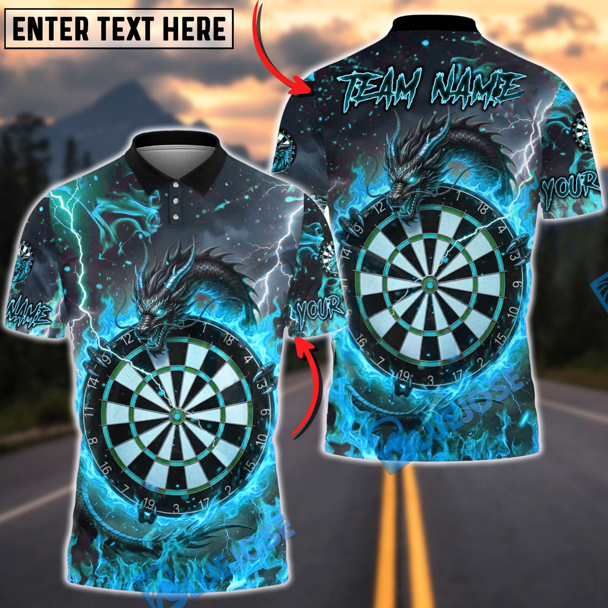 BlueJose Darts Fire Black Dragon & Dartboard Multicolor Options Personalized Name Shirt (4 Colors)