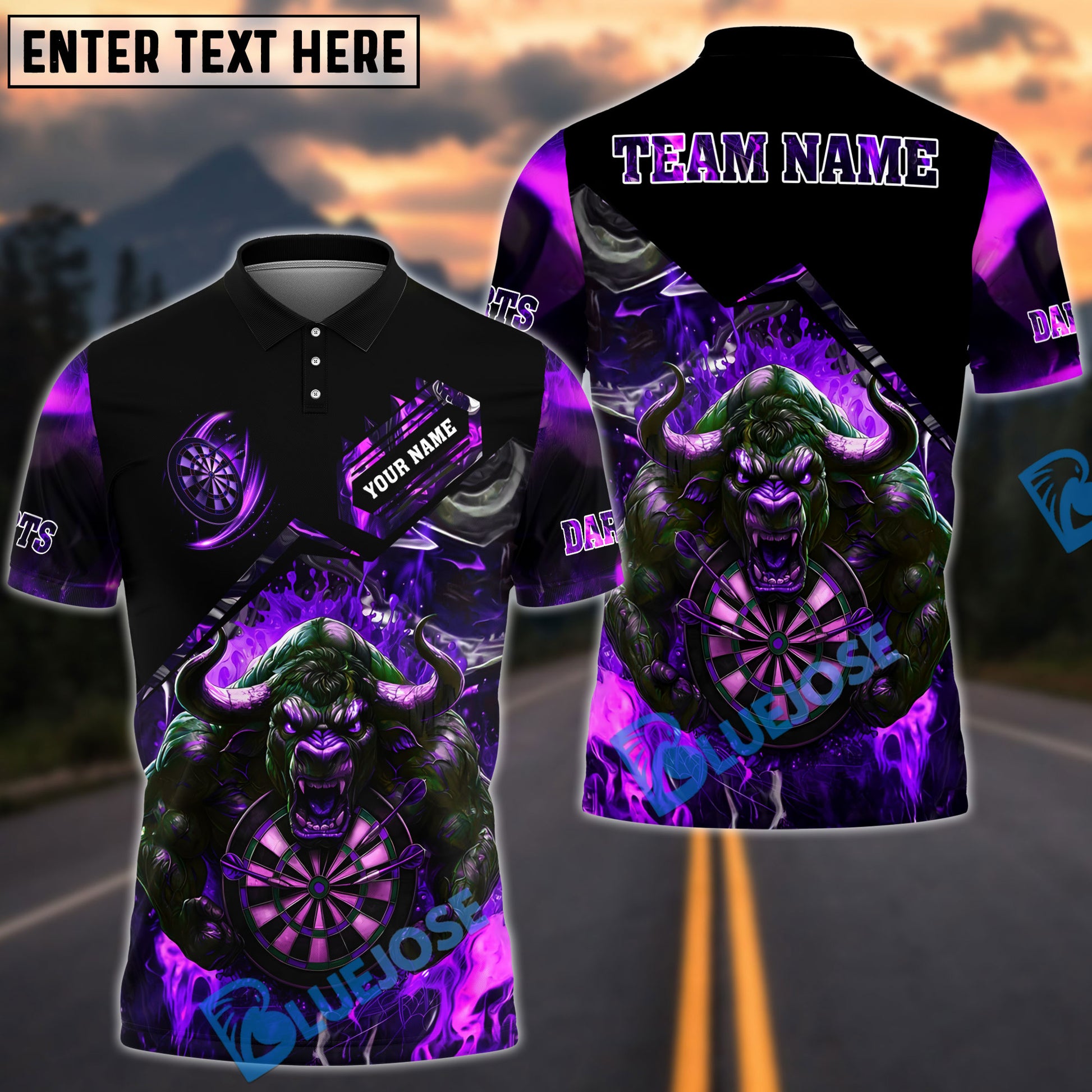 BlueJose Darts Fire Bull Arena Customized Name, Team Name 3D Shirt (4 Colors)