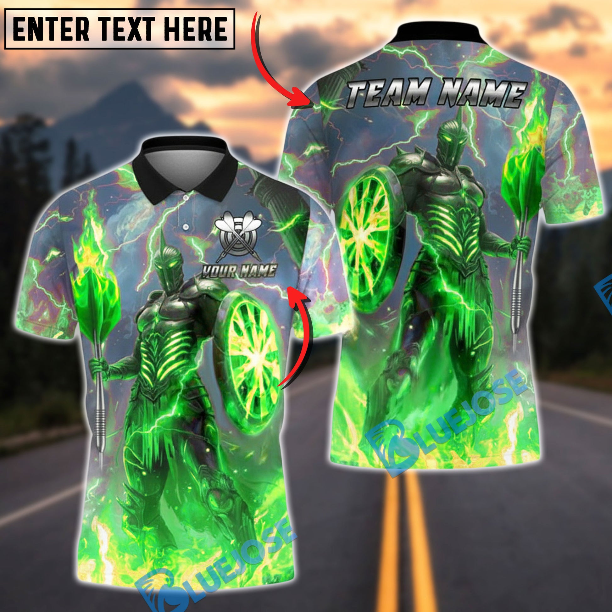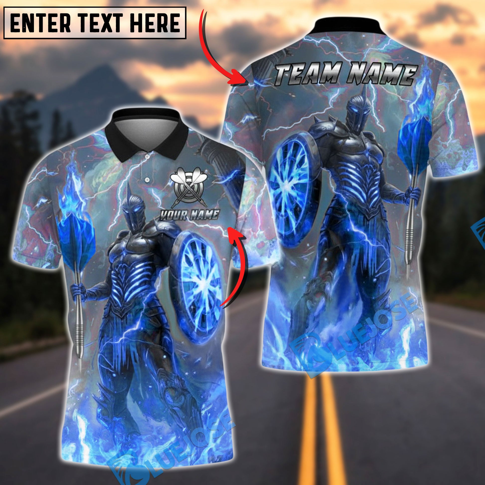 BlueJose Darts Fire Knight Personalized Name, Team Name Unisex Shirt (4 Colors)