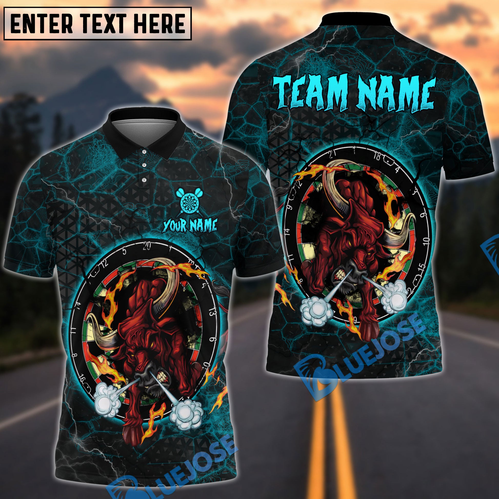 BlueJose Darts Fire Red Bull Personalized Name, Team Name Shirt (4 Colors)