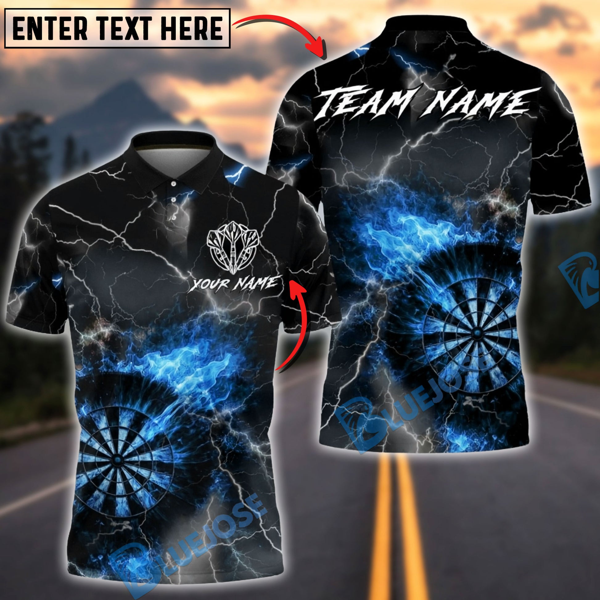 BlueJose Darts Fire Storm Inferno Dartboard Multicolor Options Personalized Name Shirt (4 Colors)