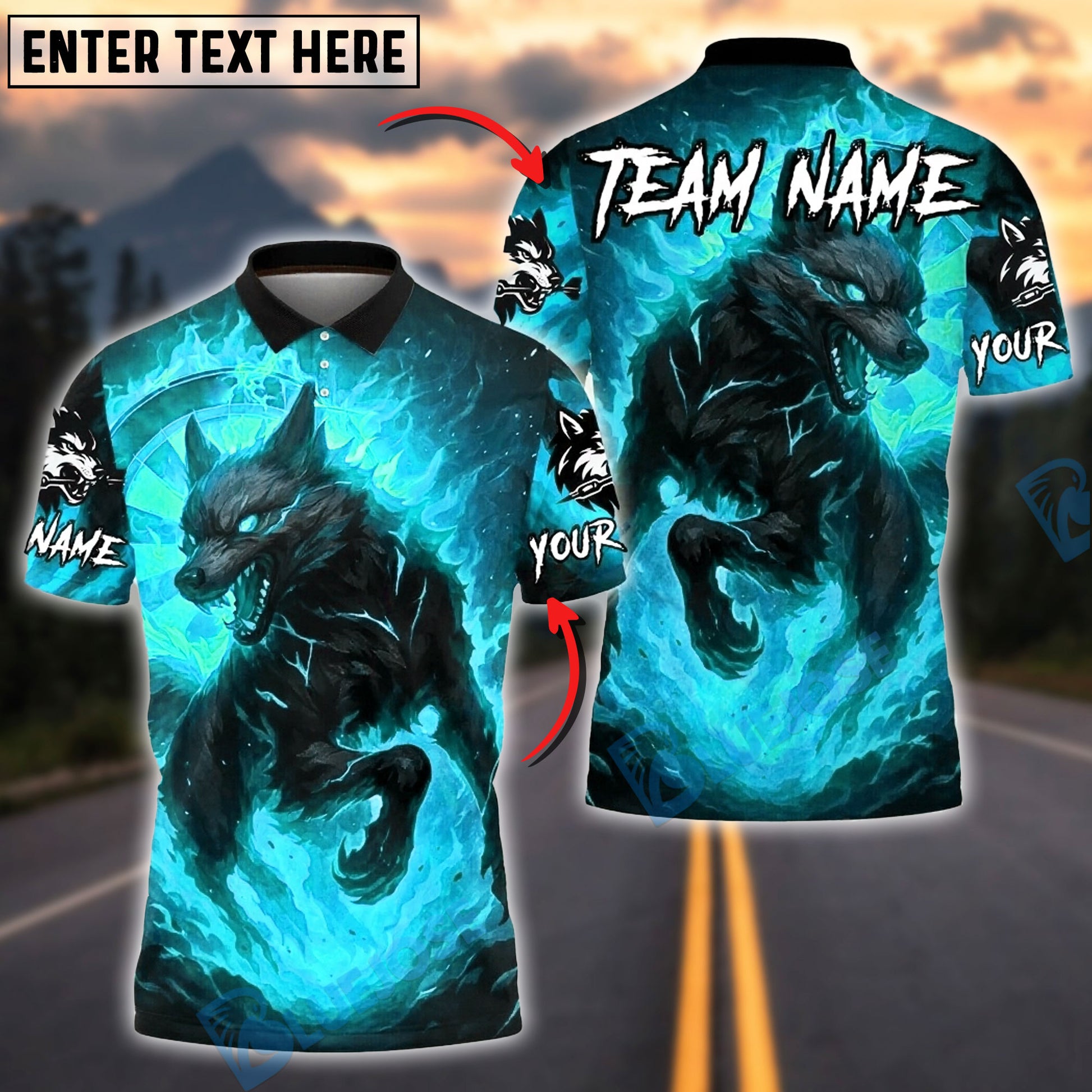 BlueJose Darts Fire Wolf Dartboard Burning Flame Power Customized Name, Team Name 3D Shirt (4 Colors)